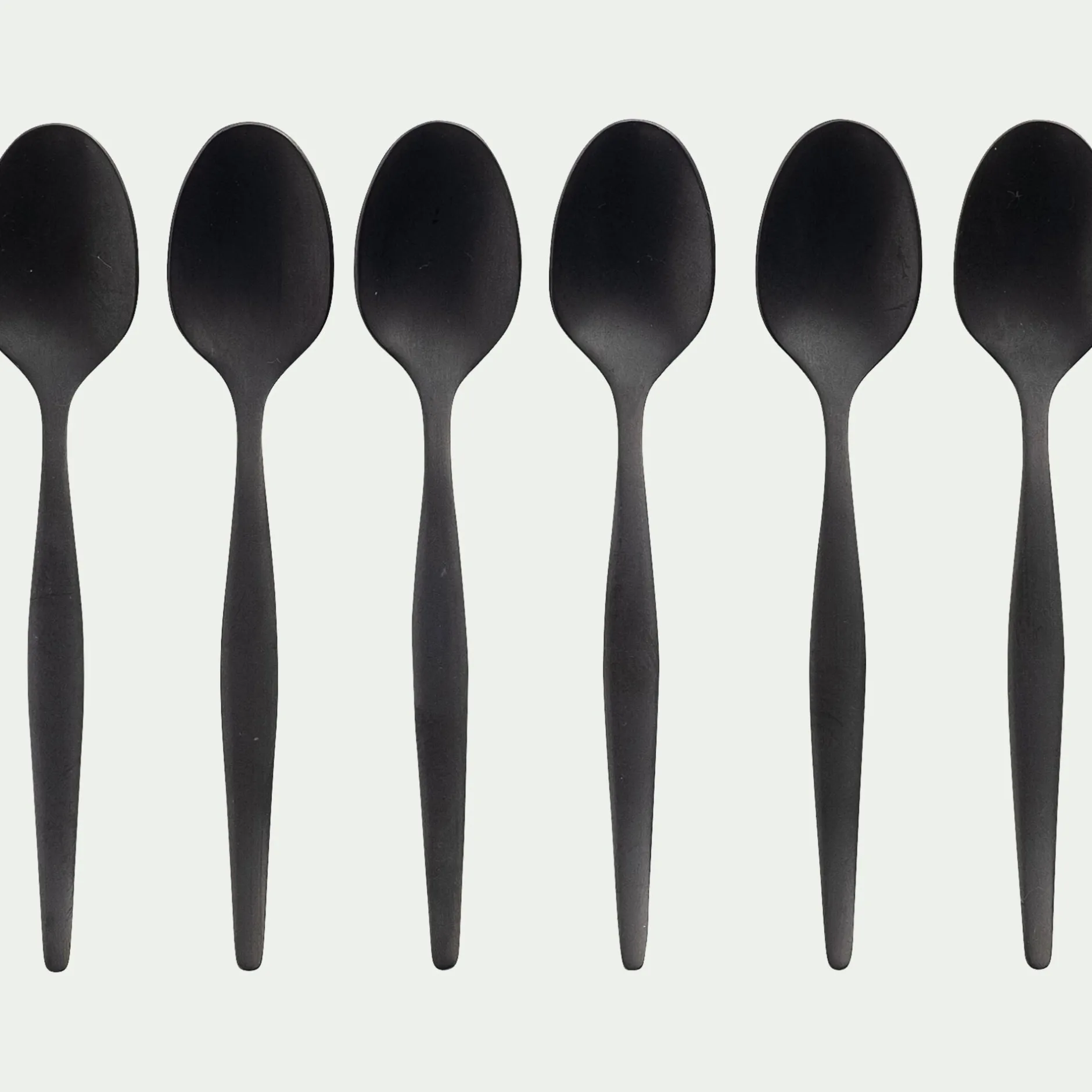 De jolies cuillères en inox noires en lot de 6 pour compléter votre service de table. Ces cuillères à l’allure chic et raffinée vous offrent une décoration distinguée et s’adaptent parfaitement à votre style pour finir vos repas avec charme. Ces cuillères à café donneront sans aucun doute du charme à votre table et son dressage.