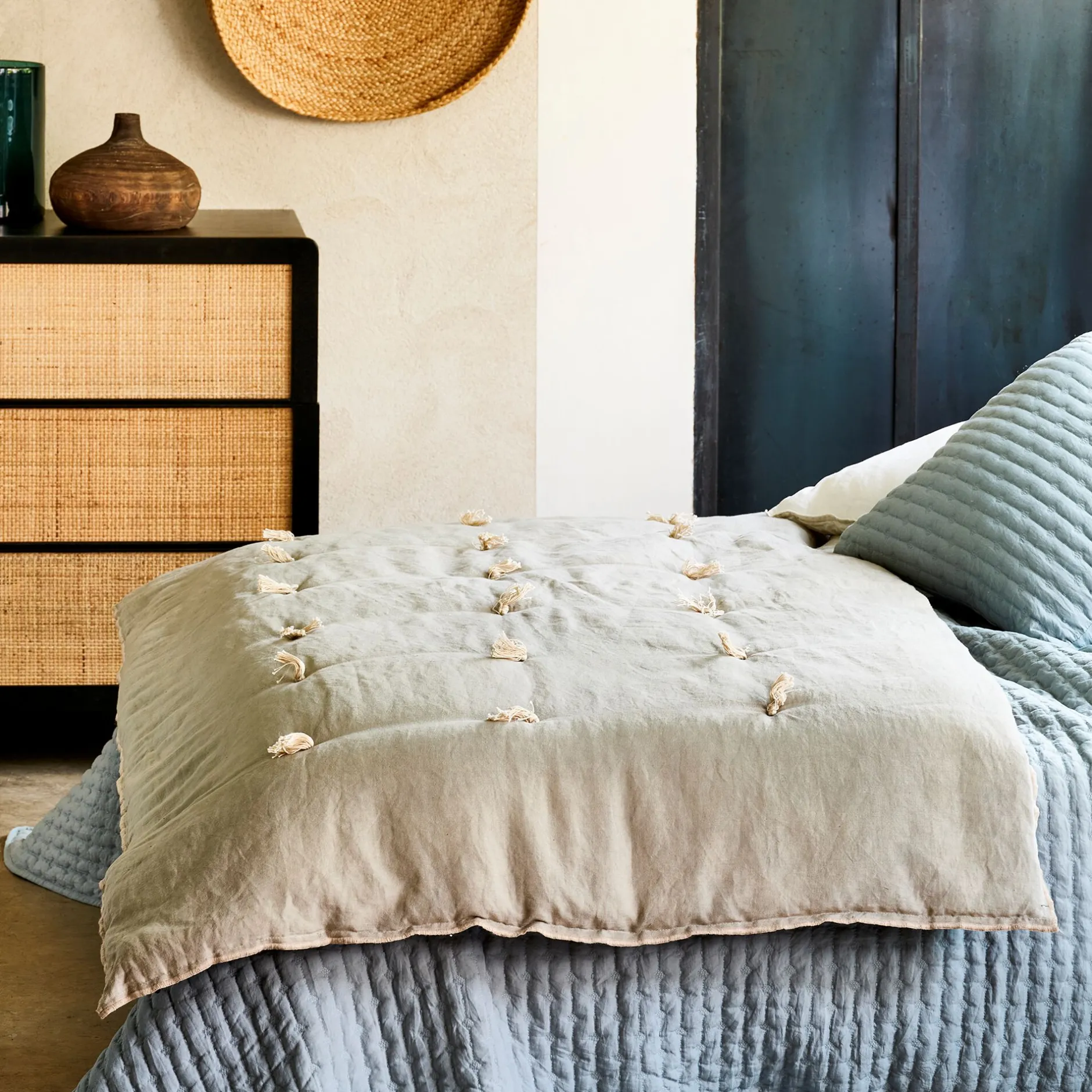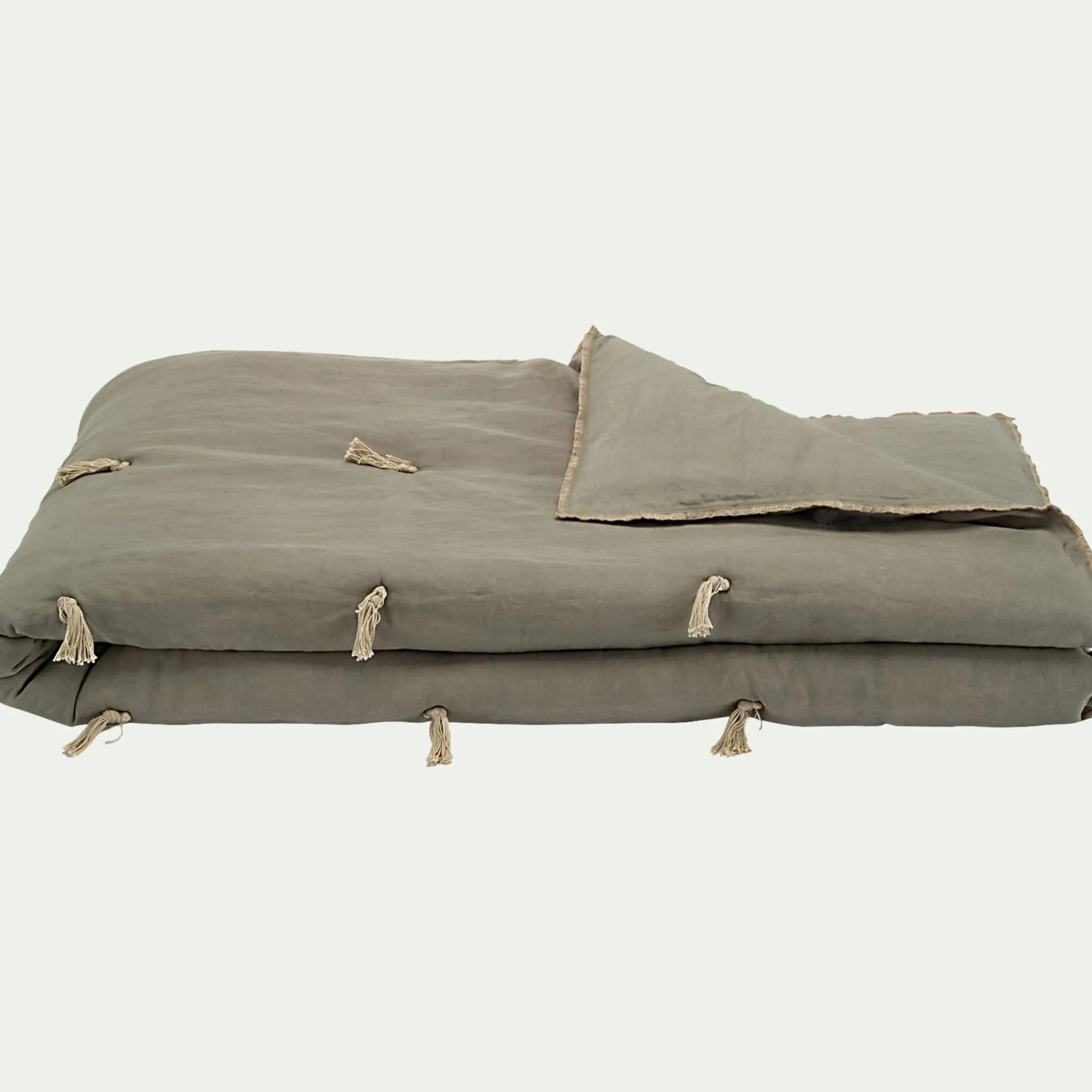 Couvre-Lit*alinea Édredon en lin et coton 100x180cm piquage pompons – olivier Vert