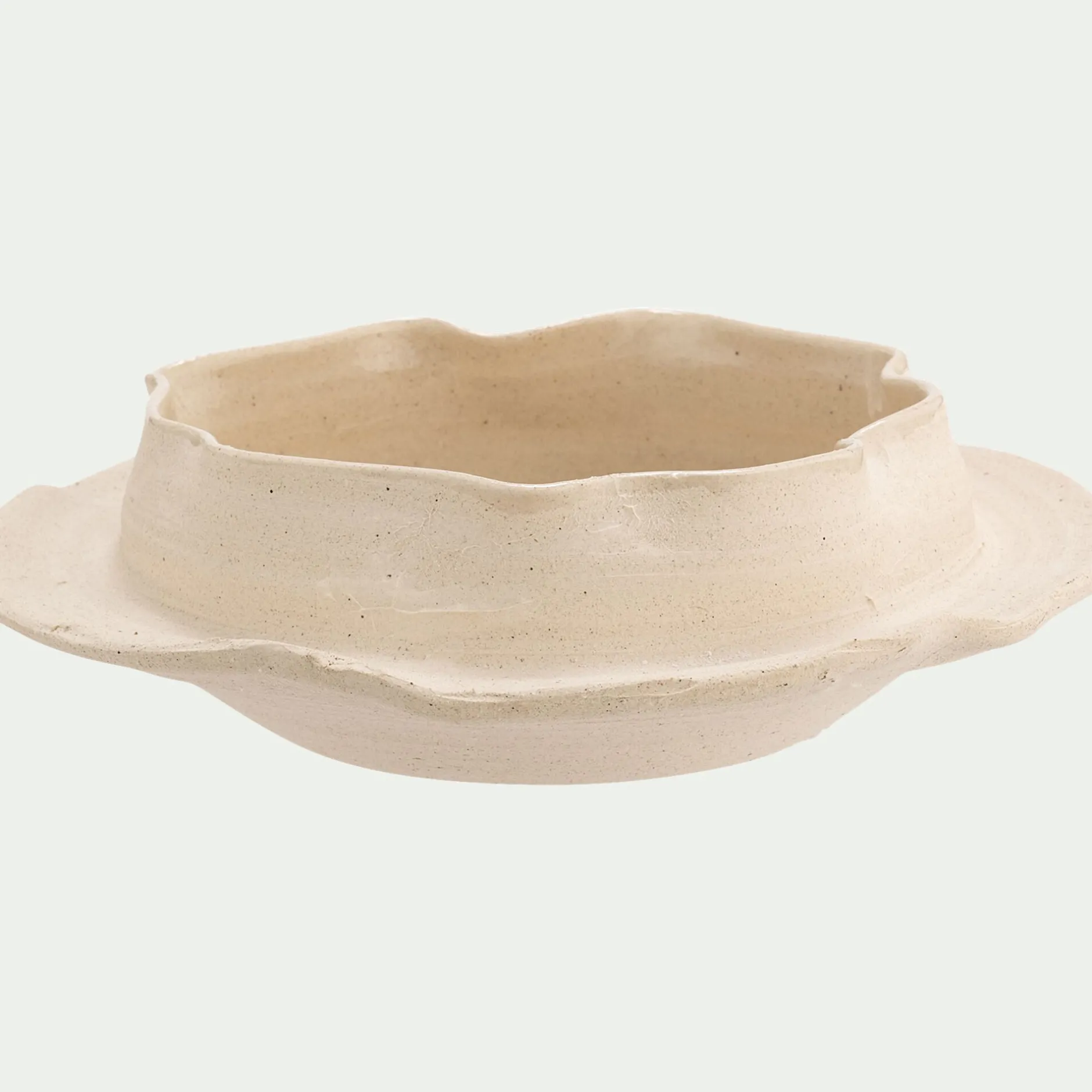Apportez une touche de raffinement à votre intérieur avec cet objet décoratif en grès, une pièce au design épuré qui allie modernité et authenticité. Avec son diamètre de 25 cm et sa hauteur de 7,5 cm, il séduit par son équilibre parfait entre sobriété et sophistication. Sa silhouette aux lignes courbées et sa texture minérale confèrent une présence subtile et apaisante à votre décoration. Idéal posé sur un buffet, une étagère ou une table basse, il s’intègre harmonieusement dans une décoration contemporaine ou minimaliste. Un objet d’exception qui sublime l’espace avec finesse et discrétion, parfait pour une décoration haut de gamme.