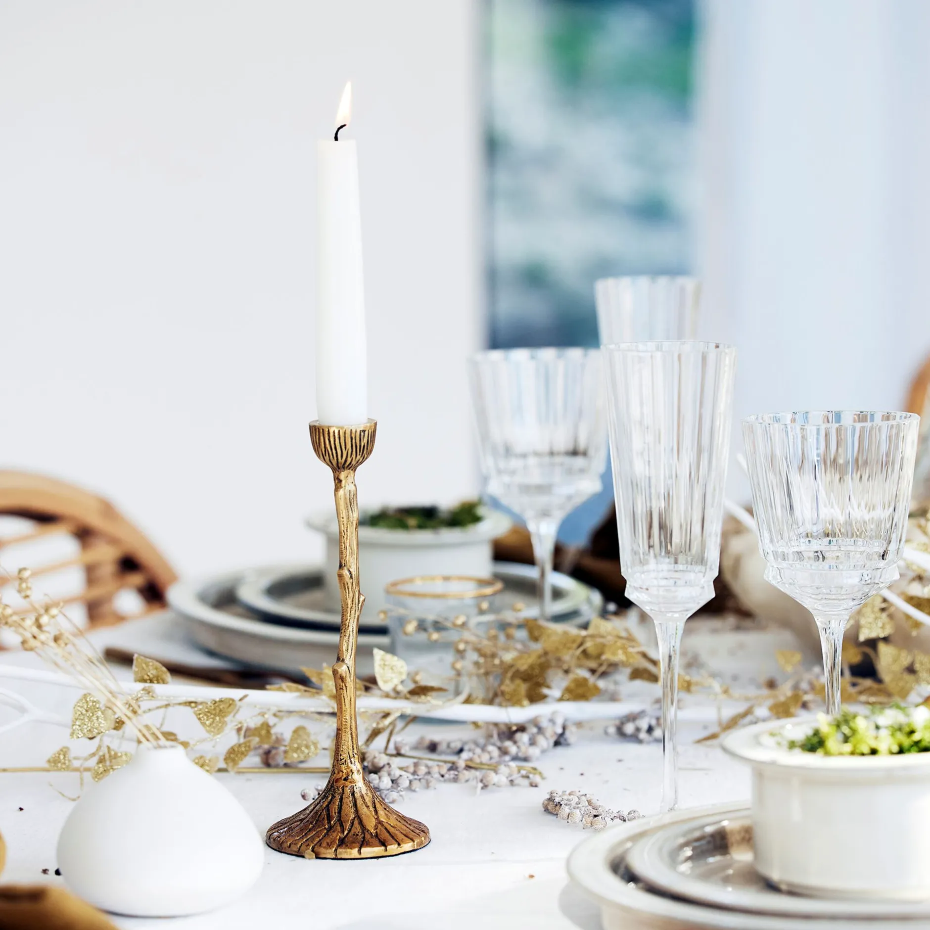 Ajoutez une touche originale à votre décoration avec ce chandelier en laiton sculpté en forme de branche. Pensé pour accueillir une bougie flambeau, il participe à une atmosphère accueillante. Quel que soit l’évènement, ce chandelier doré le rend unique et inoubliable. Sa finition dorée capte la lumière pour projeter des reflets, transformant instantanément votre intérieur.