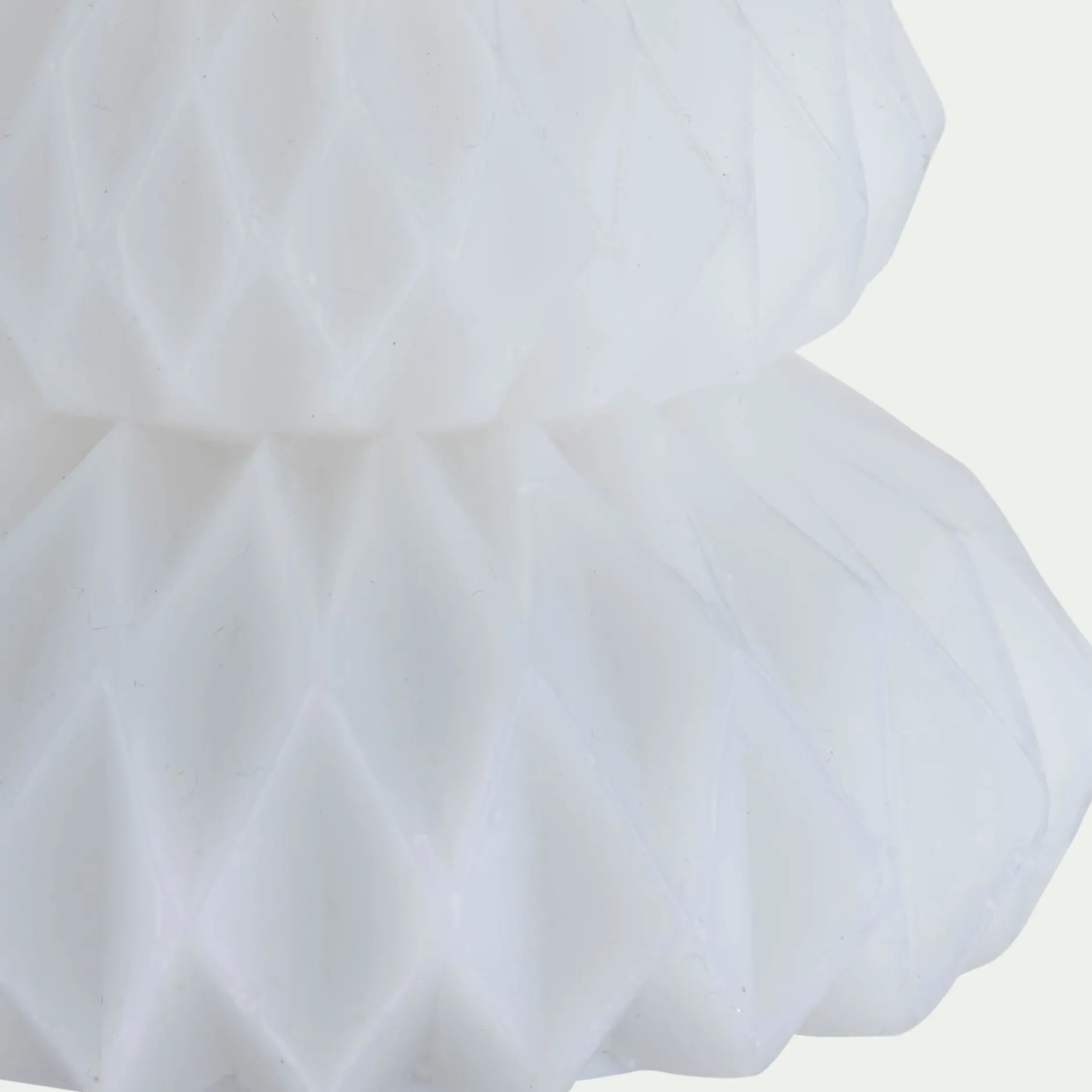 Pour une ambiance chaleureuse et sécurisée, optez pour cette bougie à LED. Sa forme de sapin en cire blanche apporte une touche d’élégance et de douceur à votre décoration de Noël. Grâce à sa technologie LED, elle reproduit l’éclat vacillant d’une vraie flamme sans les risques, parfaite pour les familles avec de jeunes enfants ou les animaux de compagnie. Disposez-la sur une étagère, une table de chevet ou en centre de table pour un effet lumineux et délicat. Elle diffuse une lumière tamisée qui rendra votre intérieur plus accueillant.