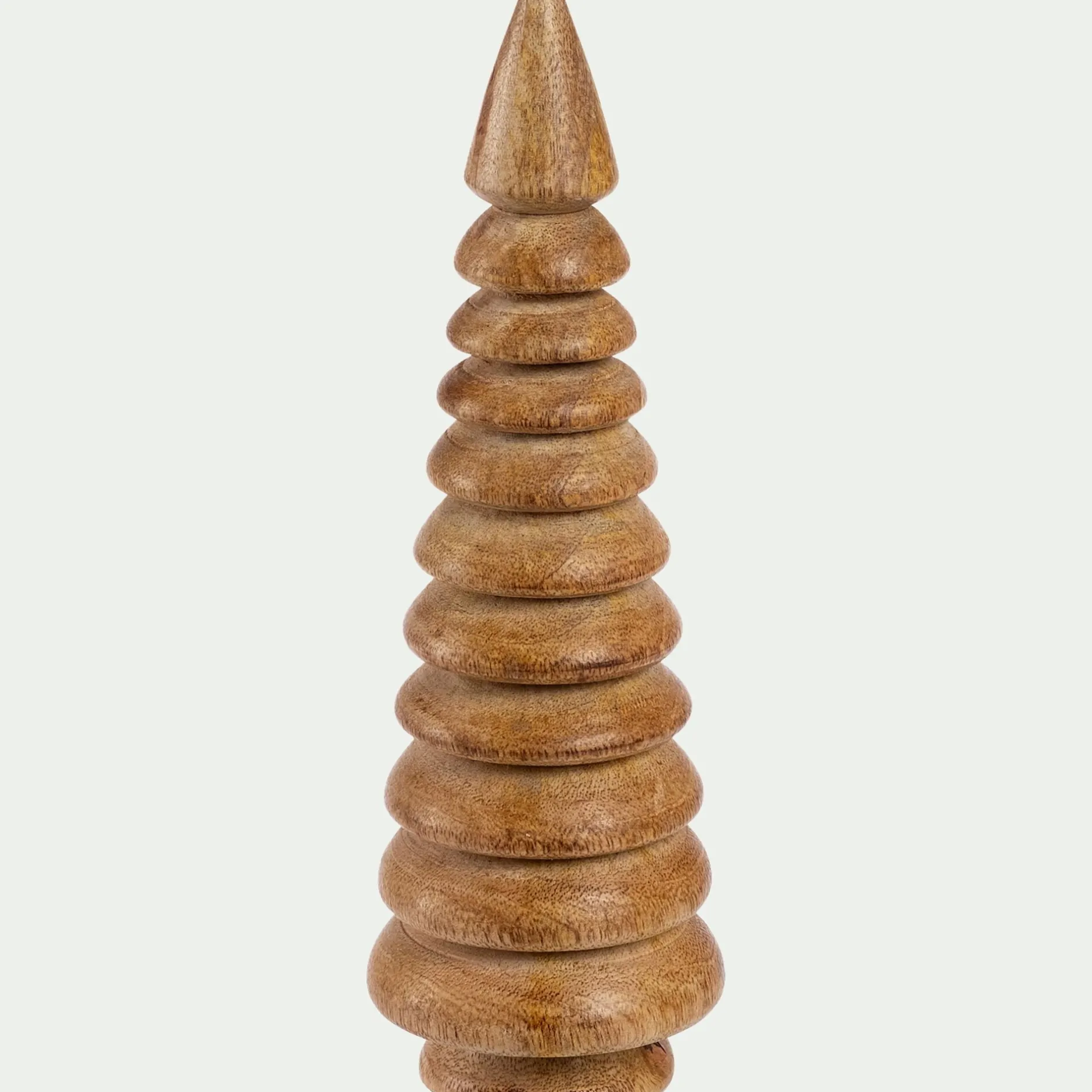 Ce petit sapin de 20 cm de haut, confectionné en bois de manguier, incarne l’élégance naturelle des fêtes de Noël. Le bois, soigneusement taillé puis lissé, révèle une texture authentique, ajoutant une touche chaleureuse à votre décoration de Noël. Sa silhouette stylisée offre un équilibre parfait entre simplicité et raffinement. Posé sur un meuble, ce sapin en bois de manguier participe à une ambiance sereine et festive.