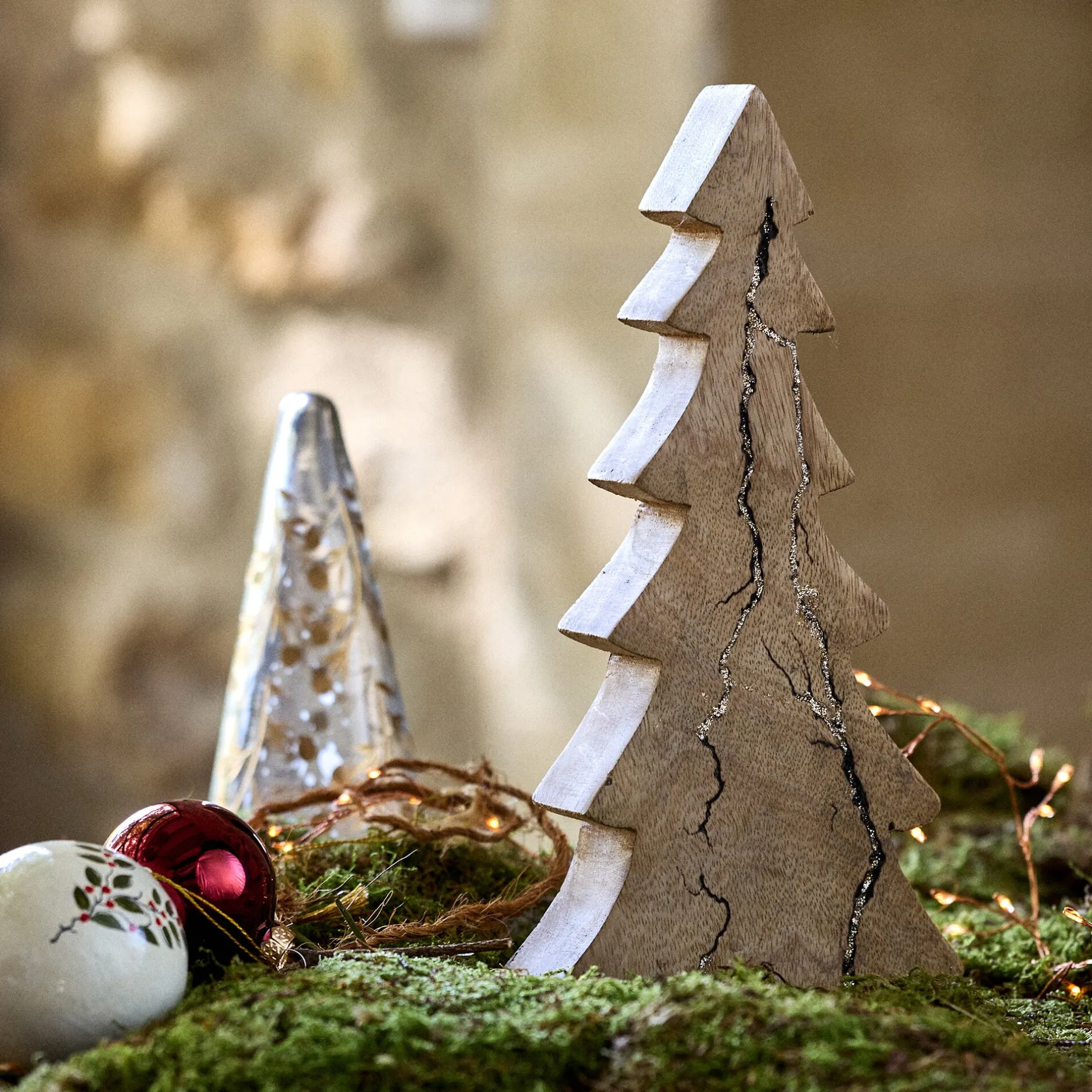 Décoration De La Table De Noël|Petit Sapin De Noël*alinea Sapin décoratif à poser en bois de manguier H29cm – Naturel