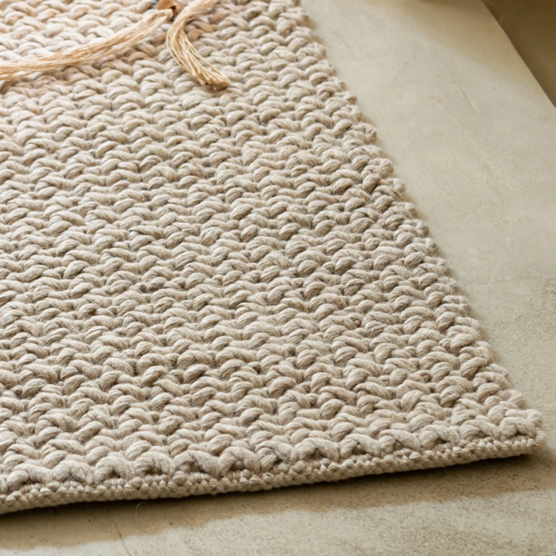 Ce petit tapis beige est une pièce de choix pour créer chez vous une ambiance cosy et chaleureuse. En laine et coton, le tapis Burello est tissé à partir de matières naturelles, douces et épaisses. Rectangulaire, il dessinera dans votre chambre un coin accueillant où se réfugier durant les longues soirées d’hiver. Son tissage lache offre un superbe effet de matière : la texture semble abondante, comme un nid douillet dans lequel on rêve de marcher pieds nus. De petite taille (60x90cm), c’est une descente de lit idéale pour une chambre dans les tons naturels et nudes.