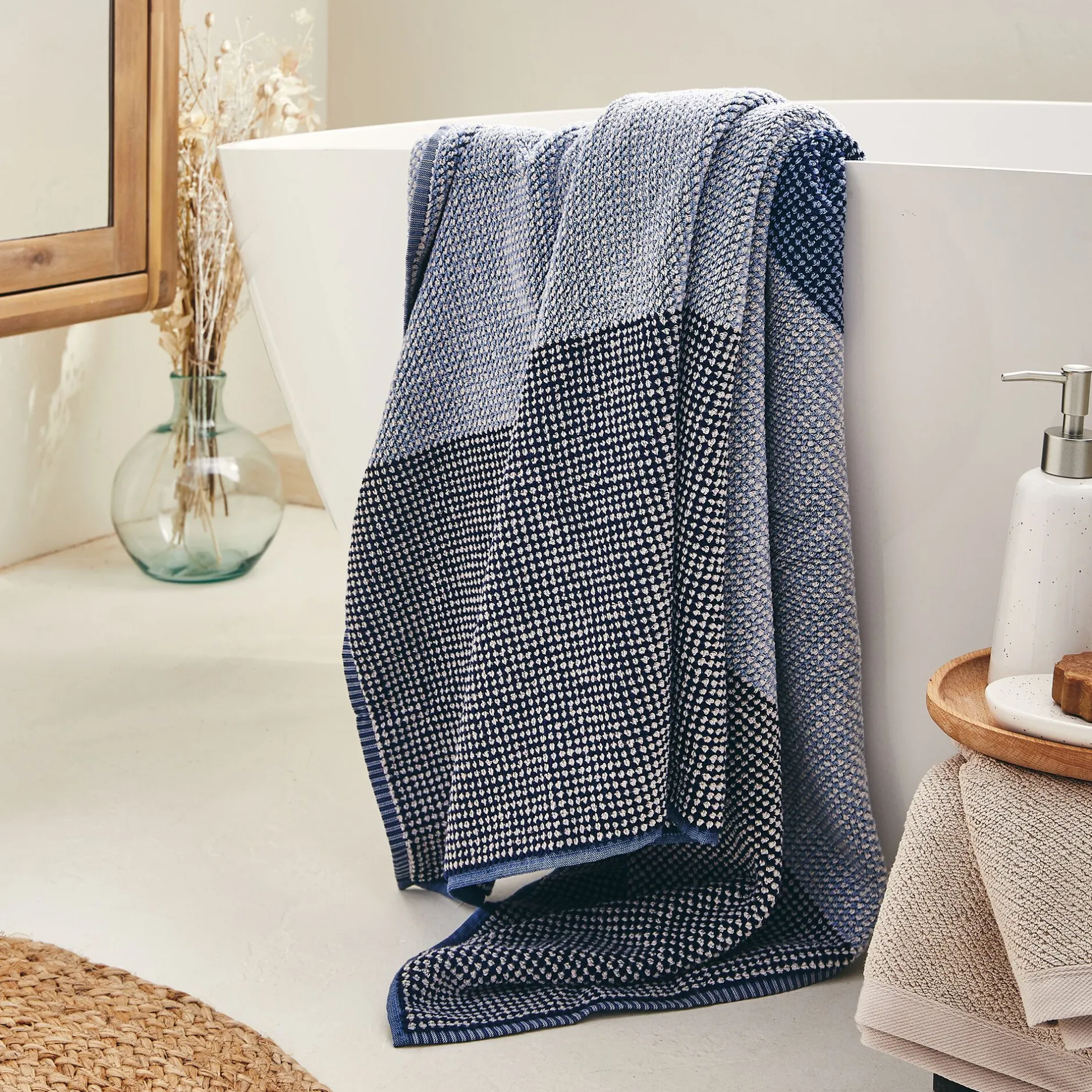 Résolument élégante et retro, la collection de linge de toilette Hugo s’inspire des codes masculins du Paris des années 1960. Cette serviette en coton, avec son grammage épais absorbe l’eau très rapidement et son fil retors lui apporte une douceur incomparable au toucher. Le linge de toilette Hugo résistera au fil du temps et des lavages grâce à sa grande qualité de tissage.