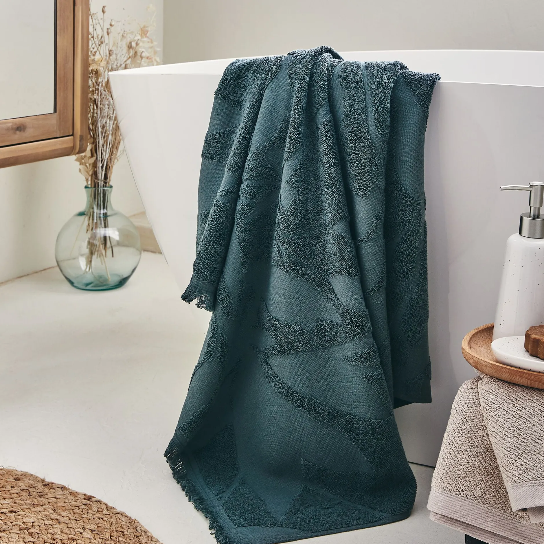 Enroulez-vous dans ce drap de bain 100×150 cm délicat et doux, composé à 100% de coton et profitez d’un instant pour prendre soin de vous. Absorbant et très agréable au contact de la peau, son coloris vert cèdre viendra parfaire la décoration de votre salle de bain en y apportant une note nature tout droit inspiré du fameux cèdre; l’arbre qui règne sur les forêts provençales.