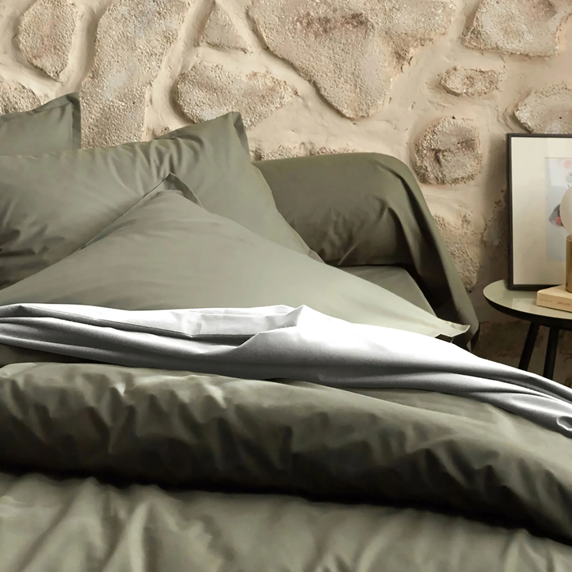 Le drap plat 270x300cm de la gamme Flore est en percale de coton, une étoffe de très grande qualité caractérisée par un tissage très dense. Les fils sont tissés à 80 fils/cm². C’est un tissu très épais et résistant qui rappelle les draps de coton de nos grand-mères. L’ensemble de cette gamme se décline en six couleurs inspirées du bassin méditerranéen, choisies pour pouvoir s’harmoniser entre elles. Il est ainsi possible de préférer un lit uni ou composé d’une association de teintes.