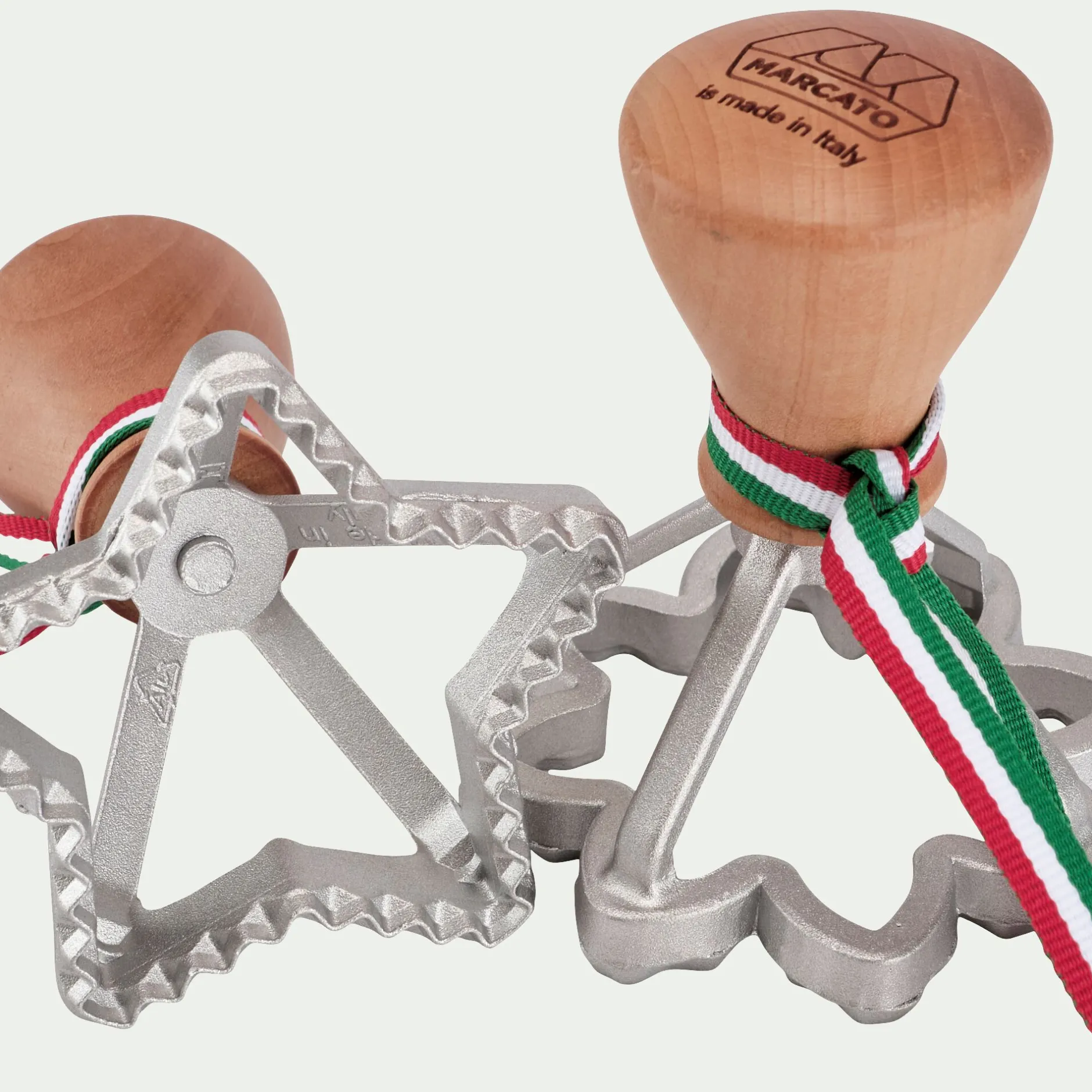 Grâce à ces deux tampons, créez des raviolis ou encore des biscuits parfaitement découpés. Pour ce faire, étalez votre pâte avec ou sans garniture. Attrapez le manche en bois et appliquez une pression sur votre préparation. En quelques secondes, de beaux biscuits ou raviolis se découpent, prêts pour la cuisson. En forme d’étoile ou de fleur, choisissez selon vos envies. Ces deux emporte-pièces fantaisistes sont le secret d’une préparation gourmande et réussie, parfaite pour épater vos invités.