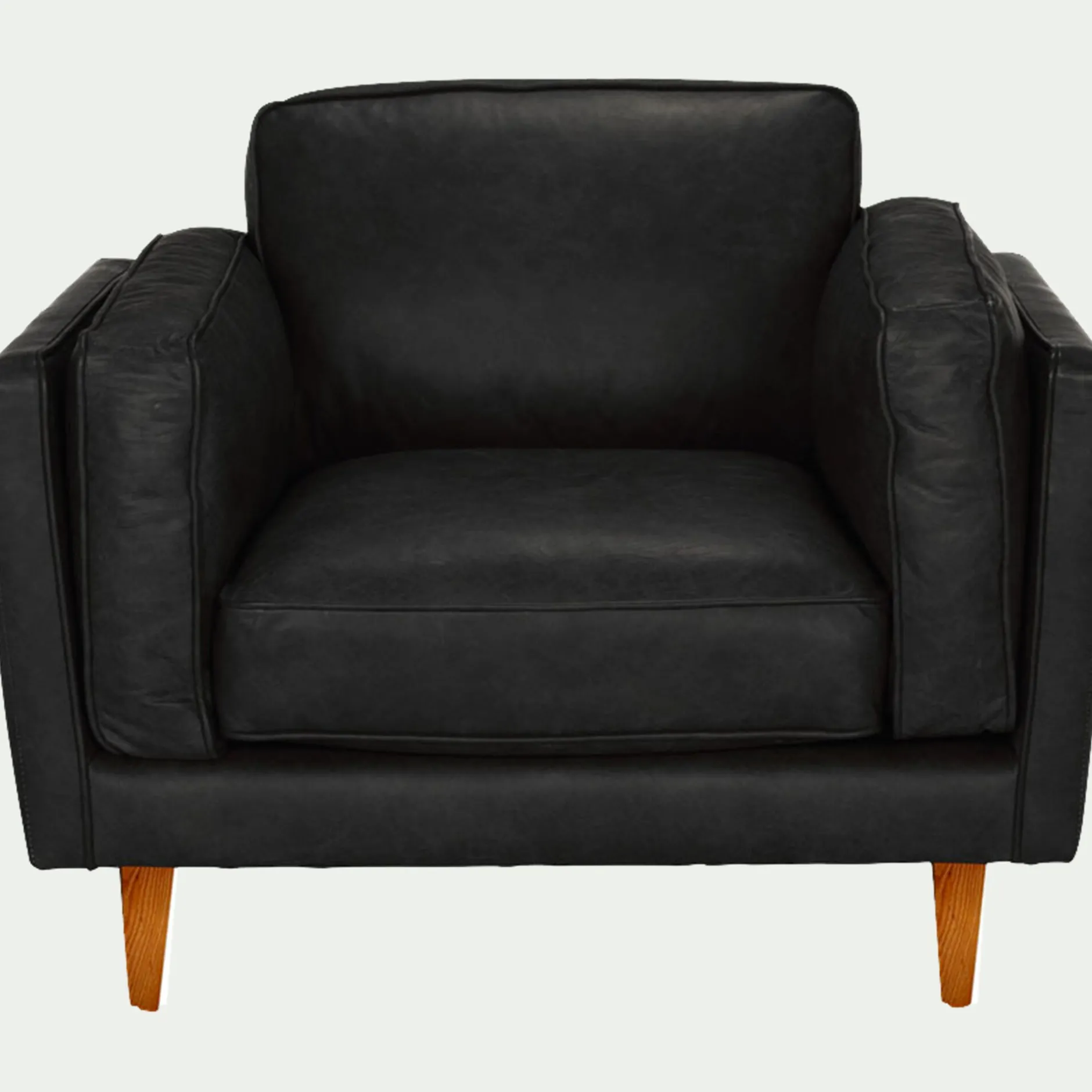 Laissez-vous envelopper par ce superbe fauteuil en cuir de vachette à l’allure enveloppante et au style rétro fièrement affirmé. Il apportera une touche vintage à votre intérieur et vous offrira un grand confort d’assise avec son dossier et son assise garnis de plumes. Pour un duo plein de charme, associez-le avec le canapé 2 ou 3 places de la même gamme.