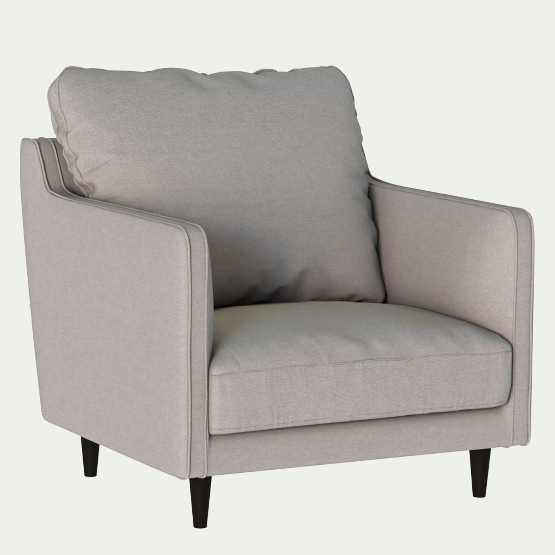 Assise et dossier : Assise en mousse polyuréthane densité 30kg/m3 et couette en fibre polyester. Coussin dossier garnissage plumes d’oie et fibre polyester.
