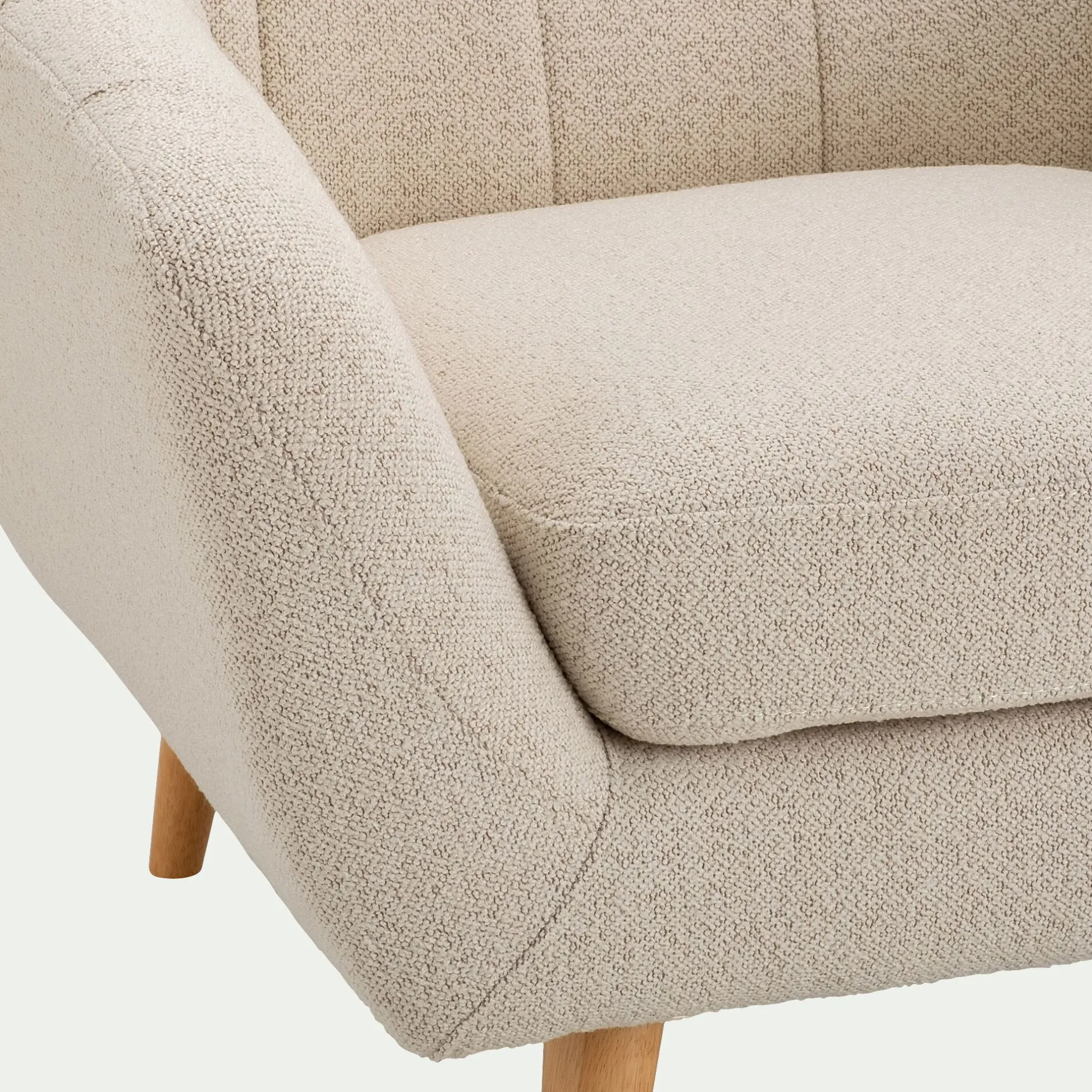 Créez une ambiance vintage avec ce fauteuil en tissu beige. Avec son assise moelleuse et son dossier matelassé, il offre un excellent confort d’assise. Son coloris beige adoucit votre décoration d’intérieur et apporte une note lumineuse à l’ensemble. Ce fauteuil beige est souligné par un piètement en hévéa, une essence de bois claire qui couronne le tout d’une touche chaleureuse. Résolument rétro, le design de ce fauteuil s’inspire d’une coquille Saint-Jacques. Découvrez le reste de la gamme Shell qui se compose de canapés, de poufs et de chaises pour vous offrir un bel ensemble qui saura mettre en valeur votre pièce de vie.