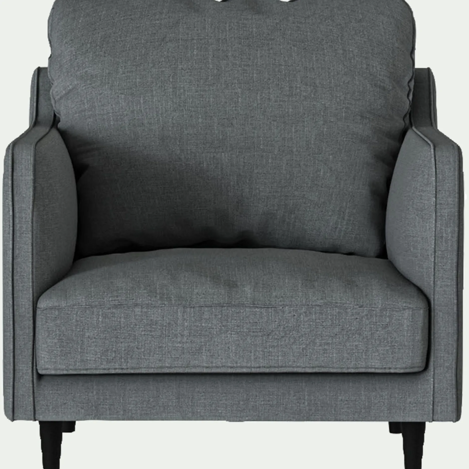 Assise et dossier : Assise en mousse polyuréthane densité 30kg/m3 et couette en fibre polyester. Coussin dossier garnissage plumes d’oie et fibre polyester.