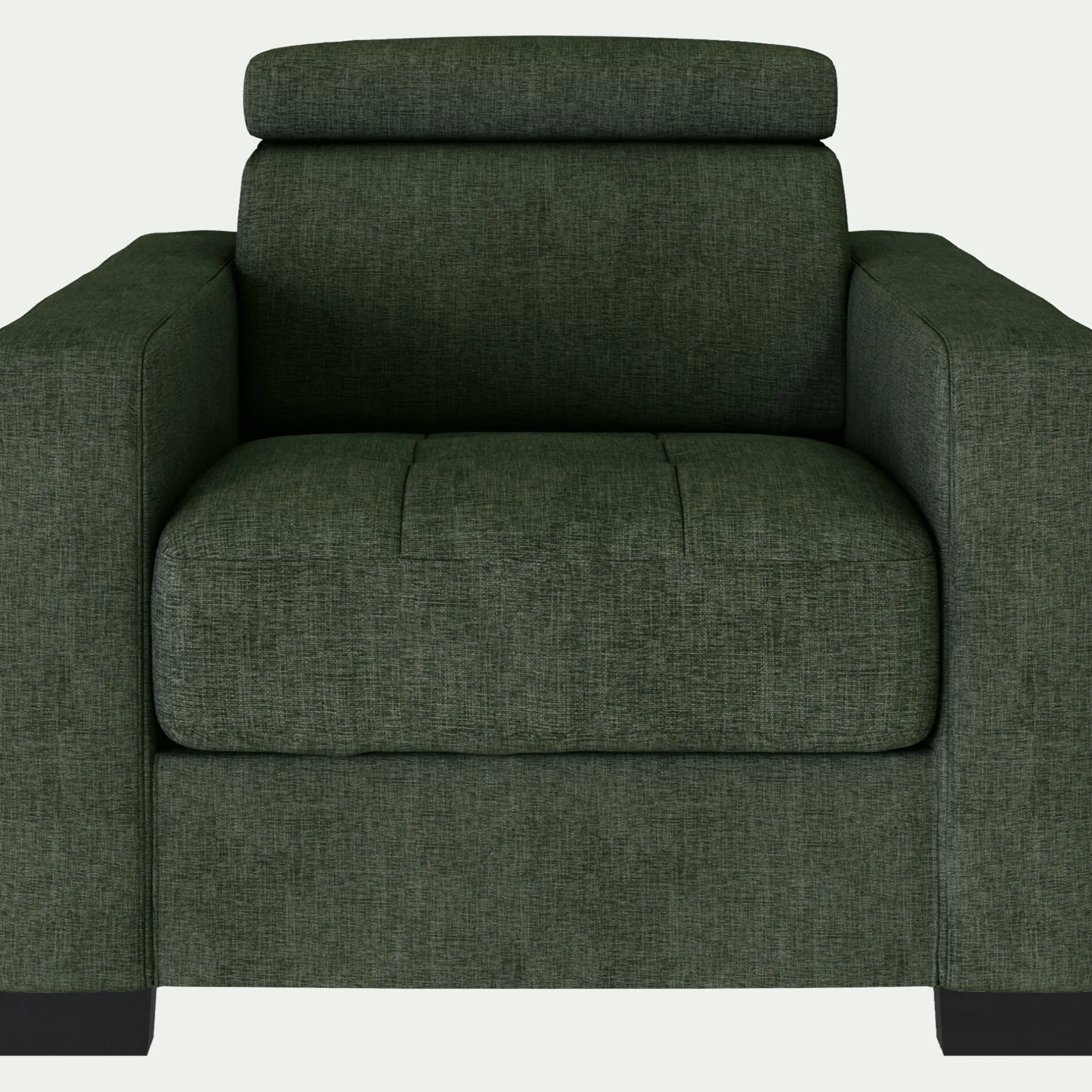 Alliant confort et élégance, ce fauteuil invite au repos avec son assise accueillante. Sa têtière réglable et ses larges accoudoirs assurent un soutien parfait, idéal pour savourer un moment de détente. Son revêtement en tissu vert cèdre participe à une déco inspirée de la nature méditerranéenne. Porté par une structure et un piètement en bois massif certifié FSC, ce fauteuil en tissu séduit par son allure avenante et sa fabrication italienne. Un fauteuil à l’élégance naturelle, pensé pour conjuguer bien-être et style.