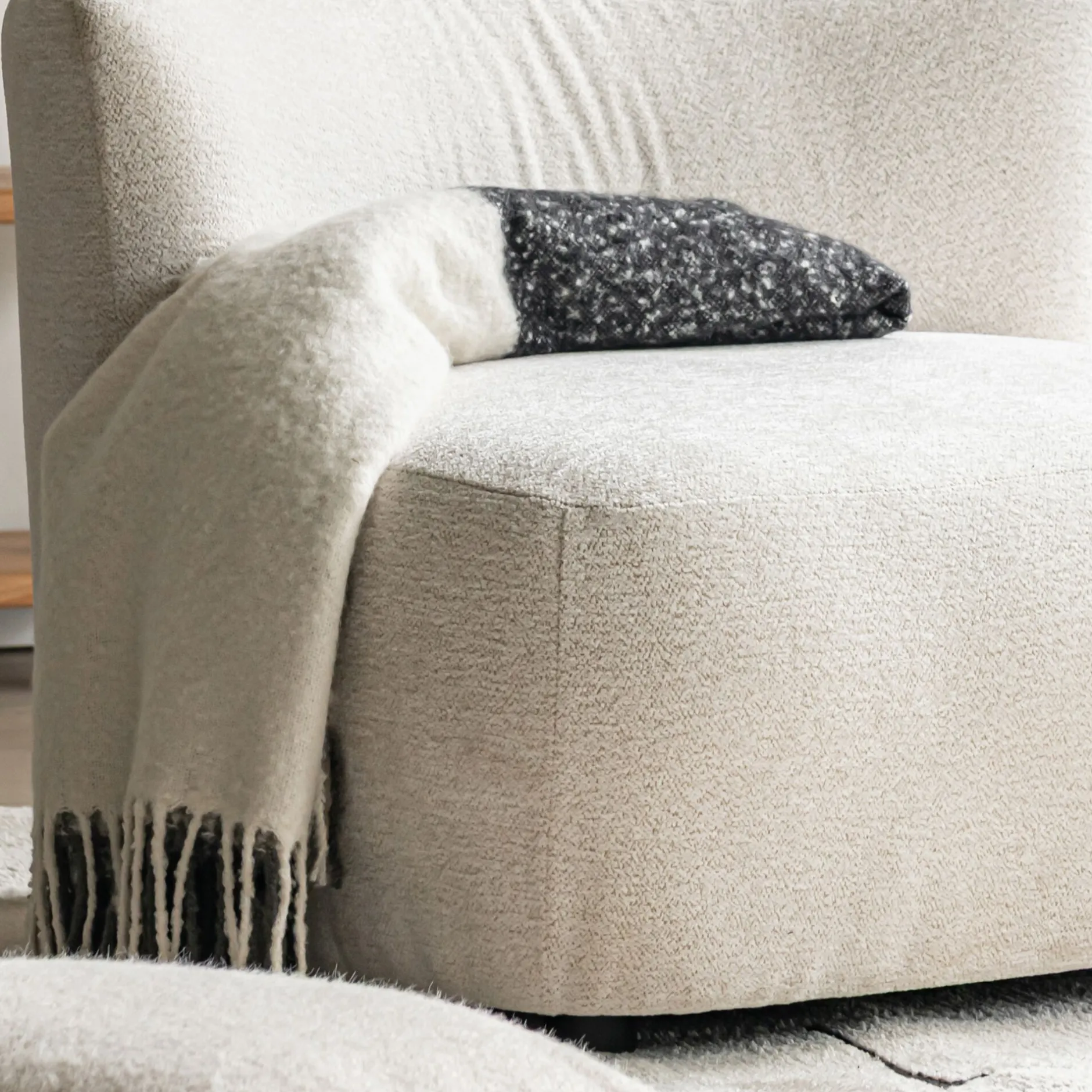 Le fauteuil Cotti assume un esprit doux et chaleureux avec son revêtement en tissu blanc écru et sa silhouette accueillante. Sans accoudoirs mais doté d’un grand dossier enveloppant, il offre une assise confortable propice à la détente. Son design arrondi et épuré en fait une pièce élégante et cosy, idéale pour structurer le salon avec simplicité et raffinement.