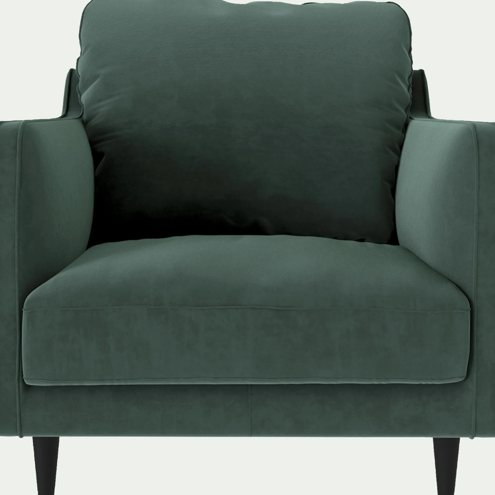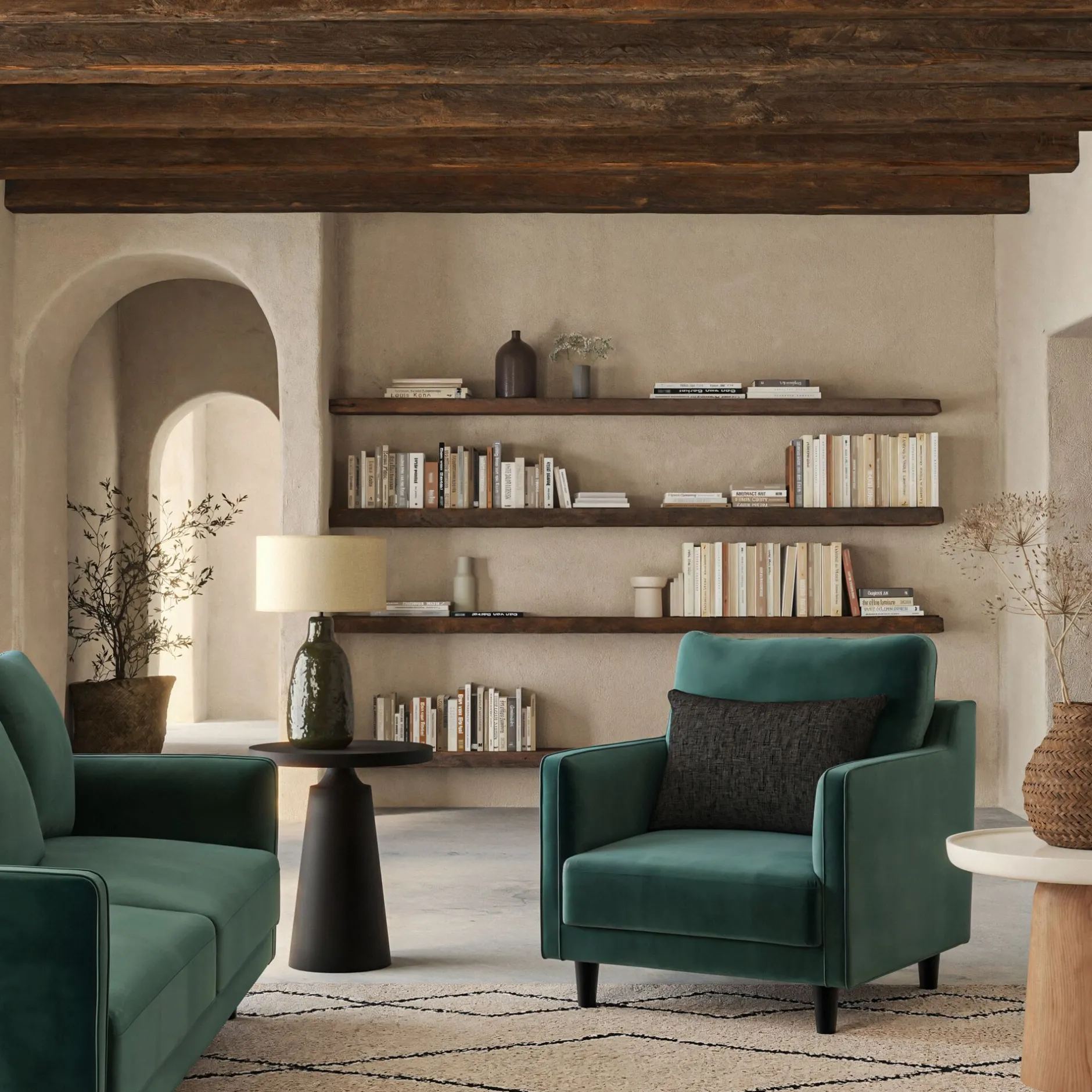 Ce fauteuil conjugue élégance italienne et confort absolu. Sa silhouette généreuse, dotée de deux larges accoudoirs, invite à la détente. L’assise moelleuse est garnie de plumes d’oie pour un accueil doux et enveloppant, parfaite pour les instants de lecture ou les longues conversations. Revêtu d’un tissu velvet au toucher velouté, il se décline dans un coloris vert sauge tout en douceur, qui apaise l’espace du salon. Fabriqué en Italie avec du bois certifié FSC®, ce fauteuil est aussi entièrement déhoussable pour un entretien facilité. Une pièce pensée pour durer, aussi belle que confortable.