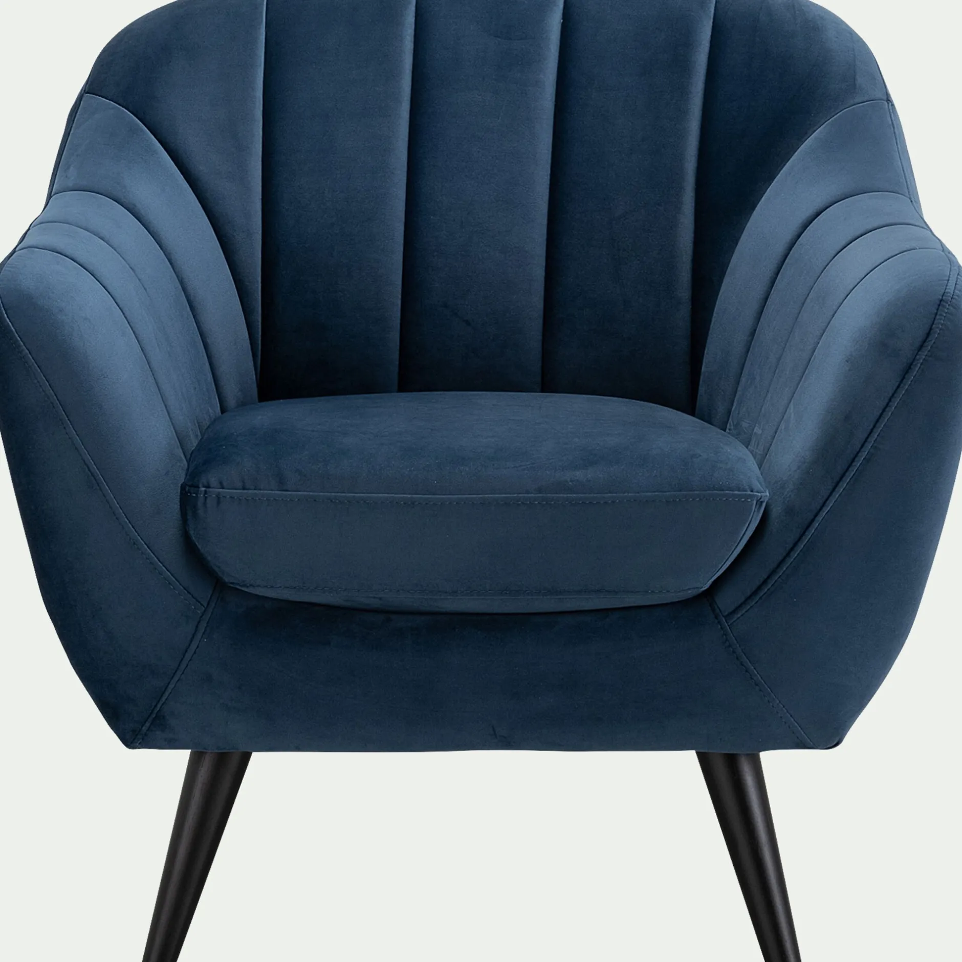 Assise et garnissage : Tissu velours Vic bleu marine 66, siège mousse densité 22-25 kg/m³, densité mousse dos 22 kg/m³