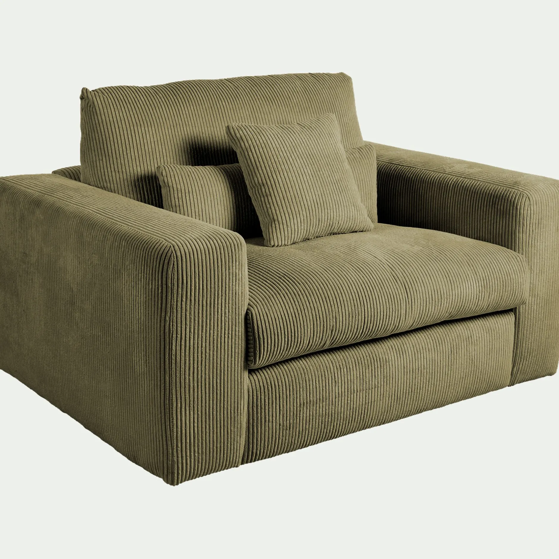 Le fauteuil Piuma est idéal pour se prélasser dans votre salon. Avec sa grande assise, ce fauteuil velours côtelé vous offre un confort exceptionnel. Il vous permet de vous détendre au coeur de coussins moelleux dans un nuage de douceur renforcé par son tissu délicat. Ce fauteuil de couleur vert cèdre apporte également une touche design moderne et élégante à votre salon. Son velours côtelé donne un côté cocooning qui vous permet de transformer votre pièce en un espace chaleureux.
