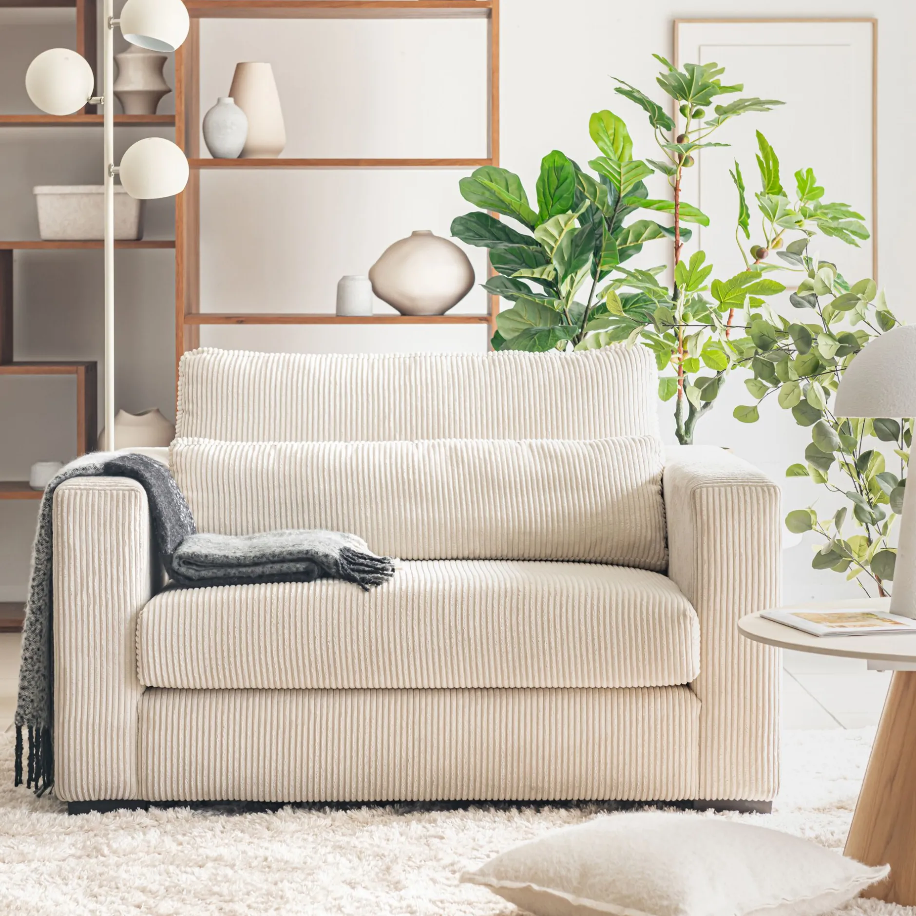 Le fauteuil Batis incarne l’alliance parfaite entre confort et élégance. Sa structure solide en bois massif assure une stabilité et une durabilité exceptionnelles. Revêtu d’un velours côtelé beige, il offre une texture douce et un aspect cocooning. Les coussins déhoussables facilitent l’entretien et permettent de maintenir la fraîcheur du canapé. Il offre un espace généreux pour se détendre en toute tranquillité. Ce fauteuil en velours allie praticité, confort et esthétique, ajoutant une touche de raffinement à votre salon.