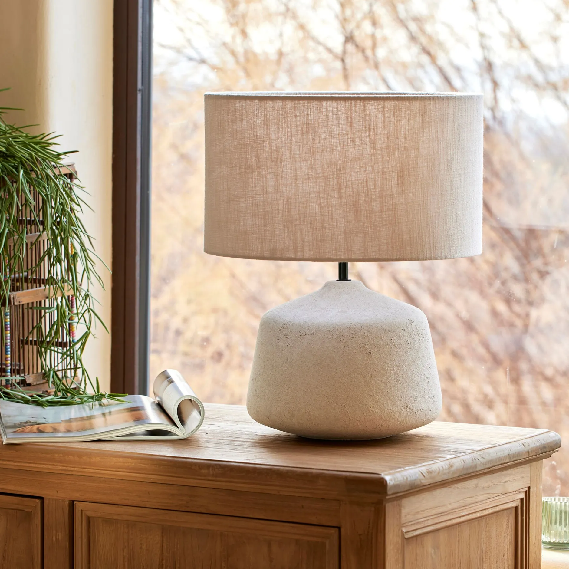 Cette lampe à poser électrifiée marie le brut et le doux avec un charme unique. Son pied en céramique présente un effet craquelé évoquant la texture de la pierre, apportant une touche organique et authentique. L’abat-jour en coton beige complète l’ensemble avec délicatesse, adoucissant la lumière pour une ambiance chaleureuse. Polyvalente, cette lampe à poser s’intègre avec élégance dans tous les styles d’intérieur, du contemporain au rustique.