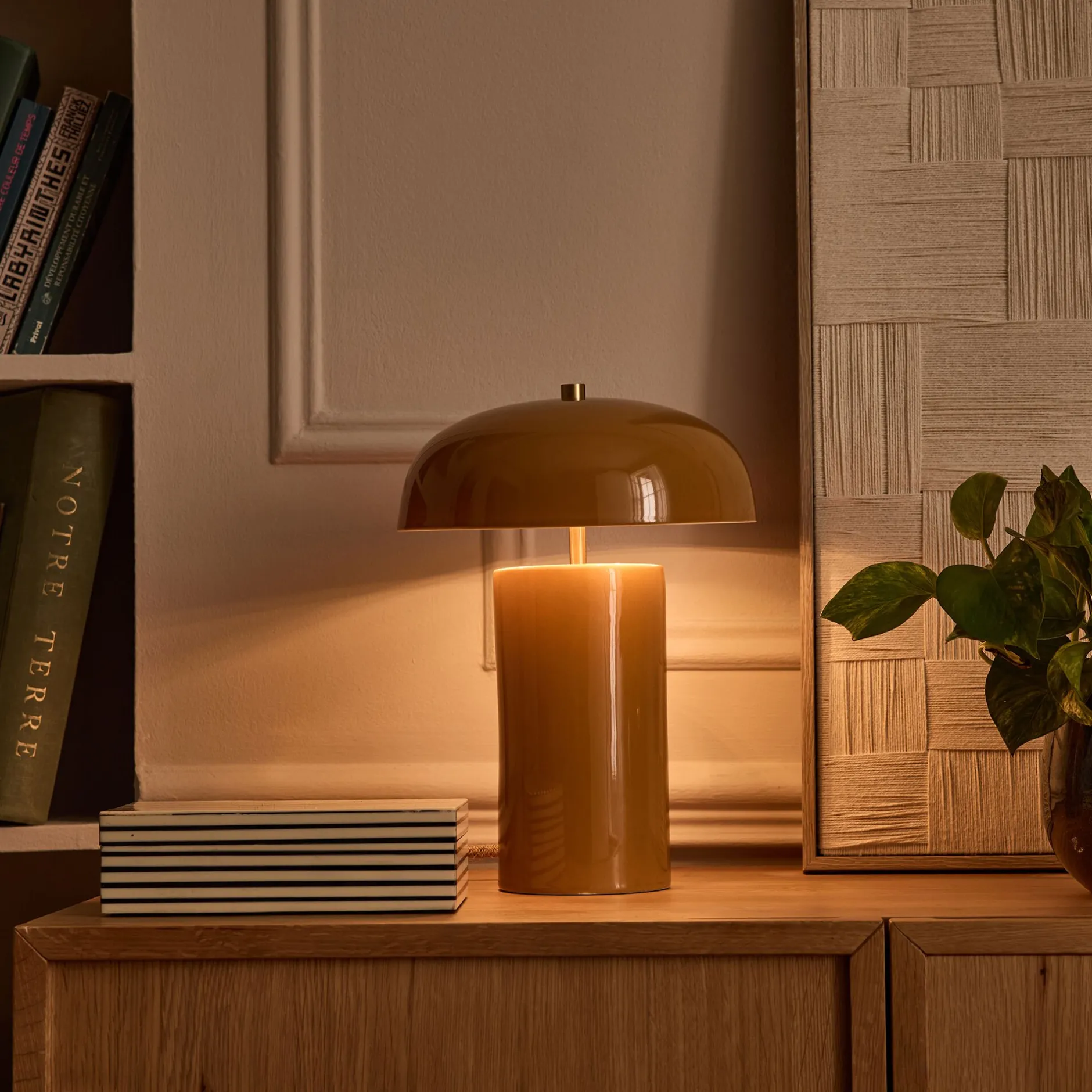 La lampe à poser Mael est fabriquée en porcelaine brillante dans un coloris jaune qui apporte une touche ensoleillée à votre espace. Son design en forme de champignon confère à cette lampe une personnalité rétro. Parfaite comme éclairage secondaire, cette petite lampe diffuse une lumière douce, créant une ambiance accueillante et chaleureuse. Avec son esthétique vintage et ses finitions soignées, cette lampe en porcelaine apporte une note joyeuse et dynamique à votre décoration.