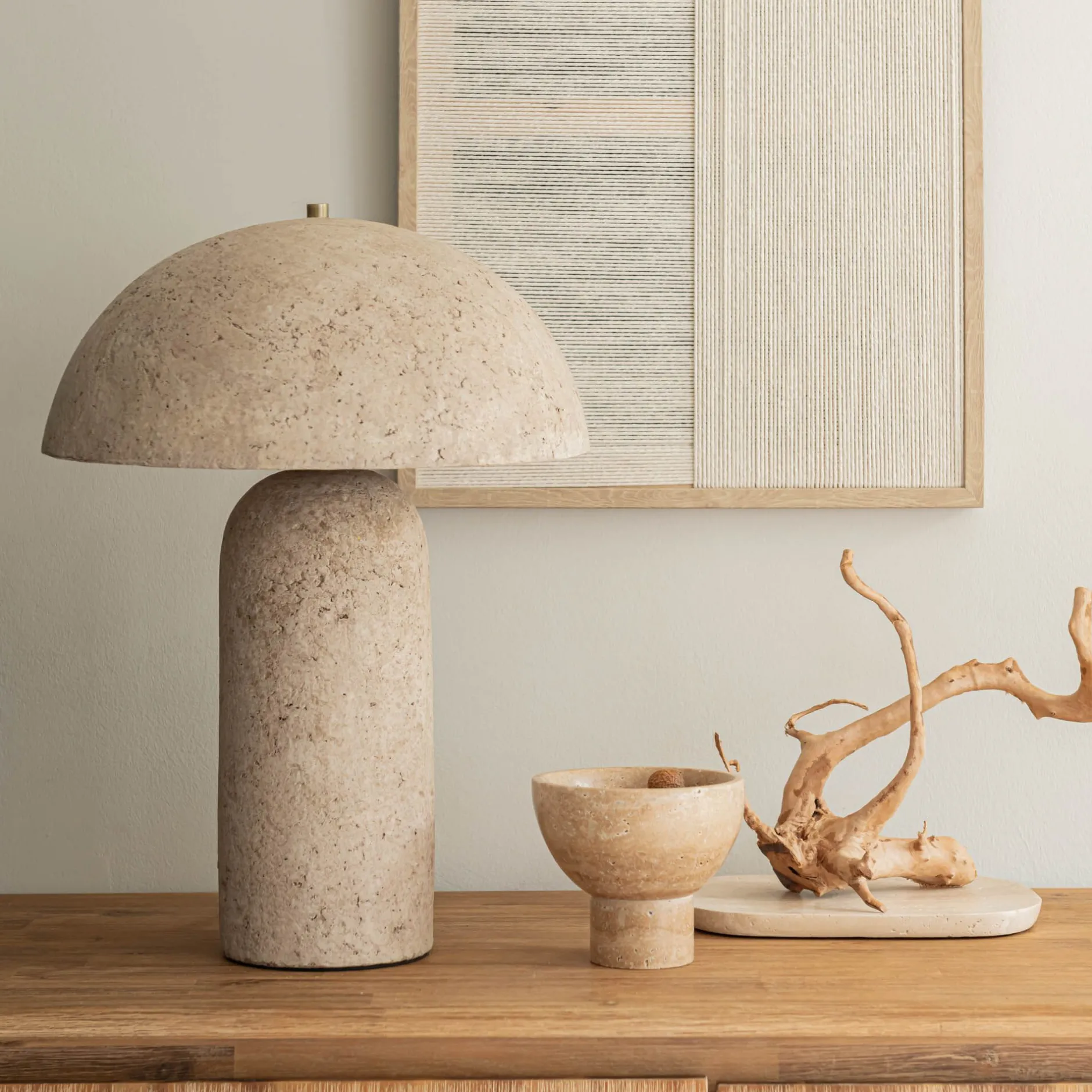 Cette lampe à poser champignon revisite le style des années 70 avec une touche naturelle et contemporaine. Fabriquée en céramique et papier mâché, elle offre une texture unique et un effet pierre authentique. Son design inspiré de la nature et ses courbes arrondies offrent un éclairage qui invite à la détente. Avec un câble en chanvre doté d’un bouton on/off, cette lampe électrifiée s’intègre aussi bien dans un bureau que dans une chambre, ajoutant chaleur et originalité à tout espace.