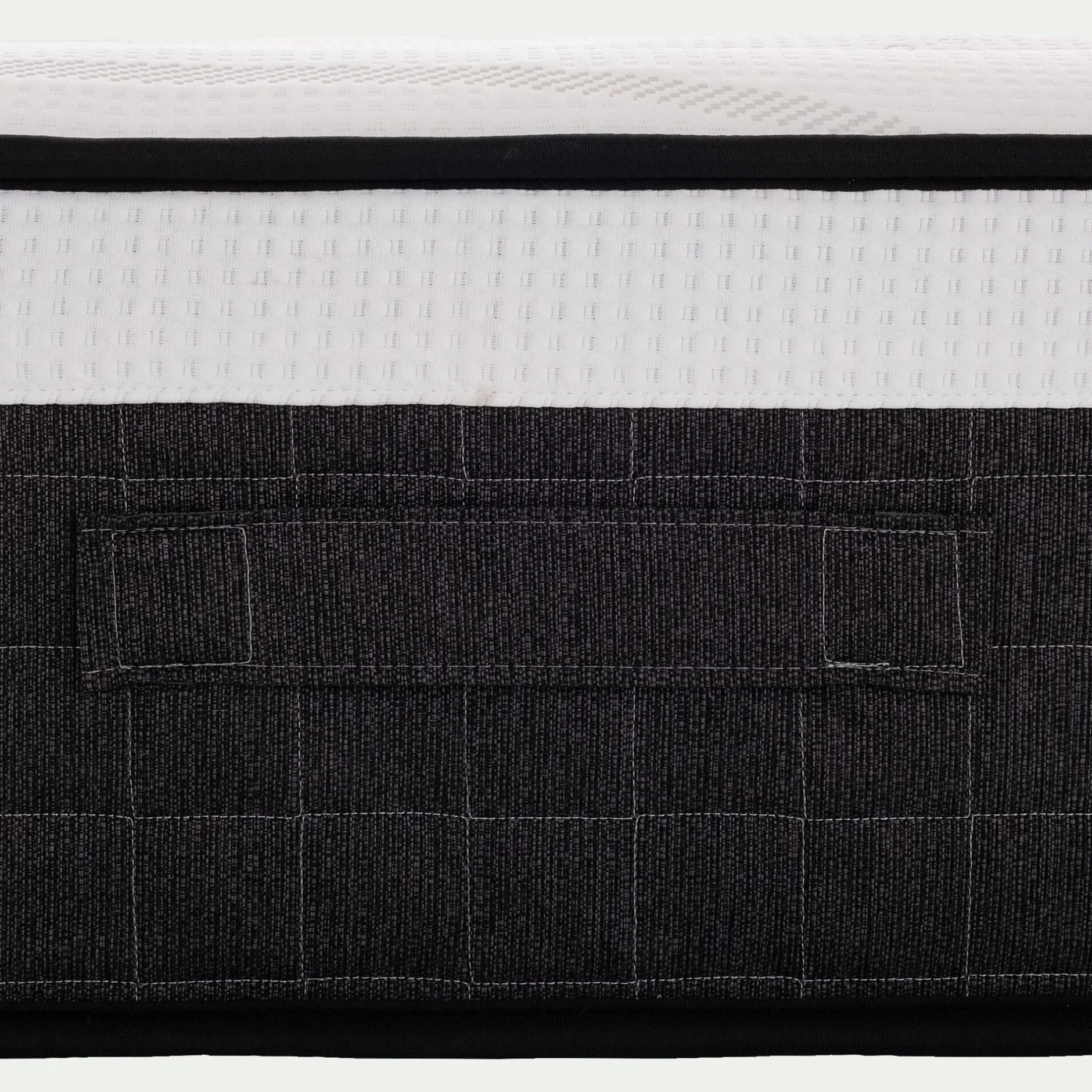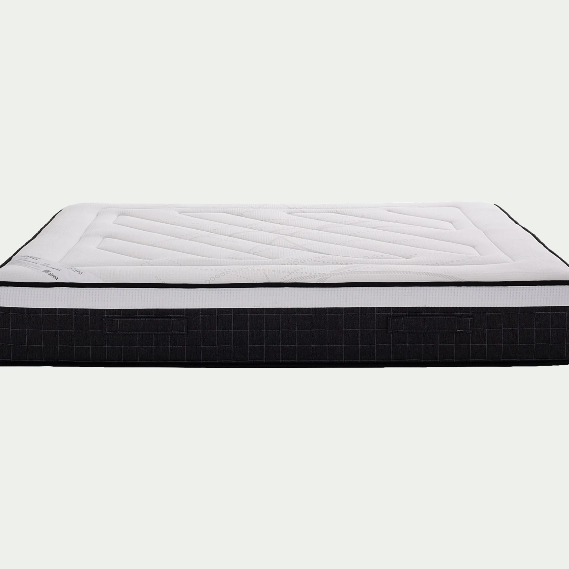 Âme : 716 ressorts ensachés en 140x200cm (70% recyclés, 30% non recyclés), ouate 100% polyester 300gr/m2 (70% recyclée, 30% non recyclée) et mousse viscoélastique 45kg/m3 12mm.