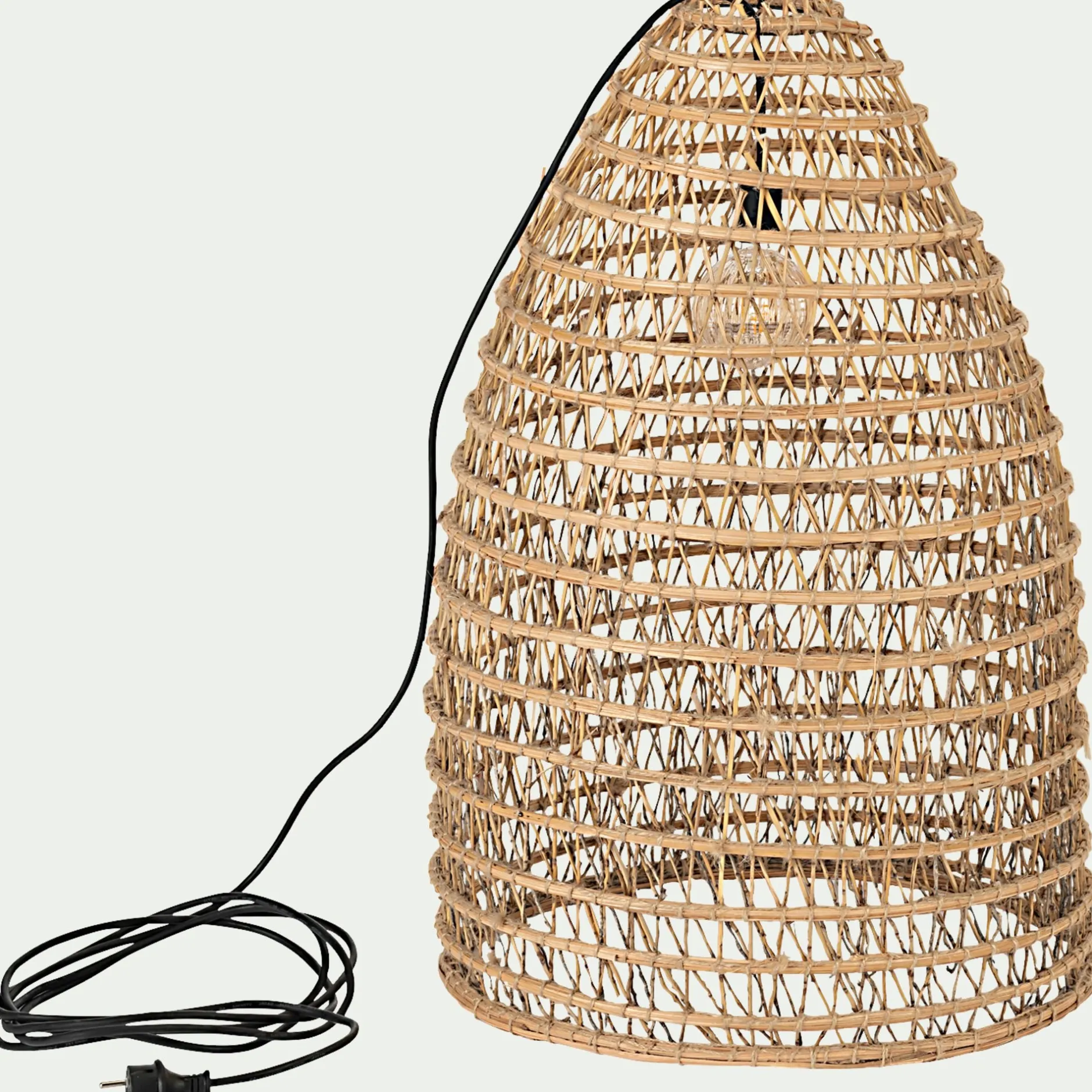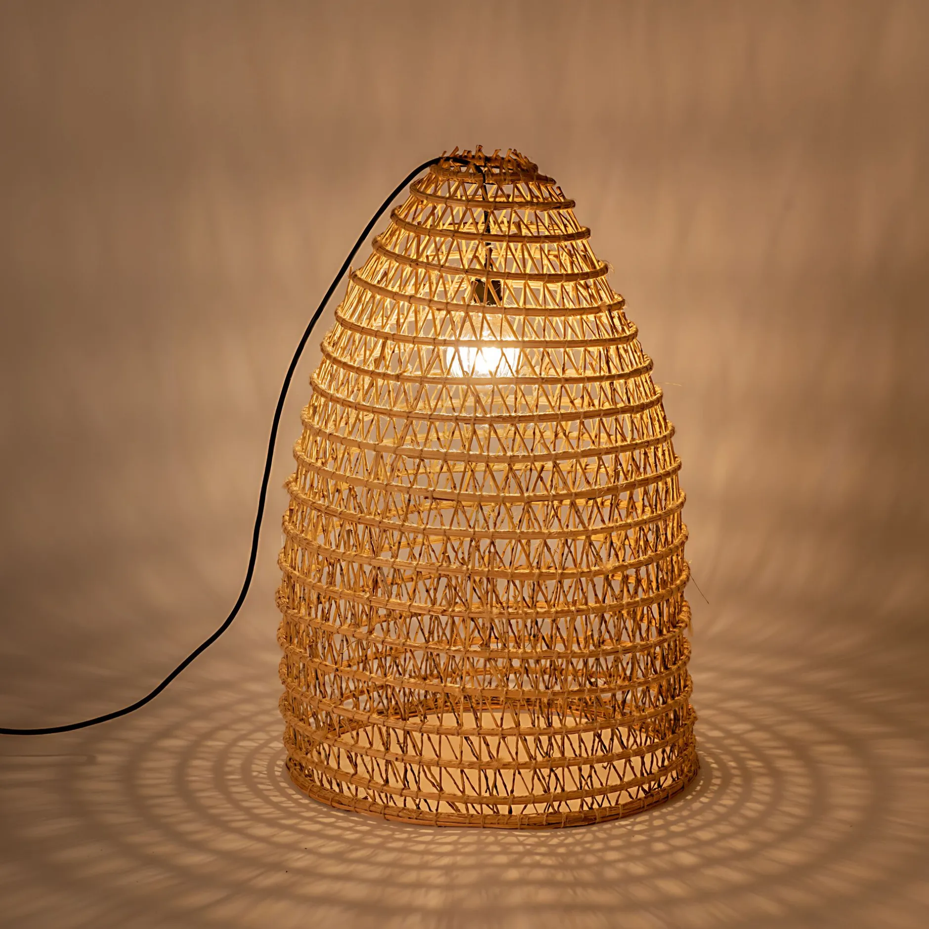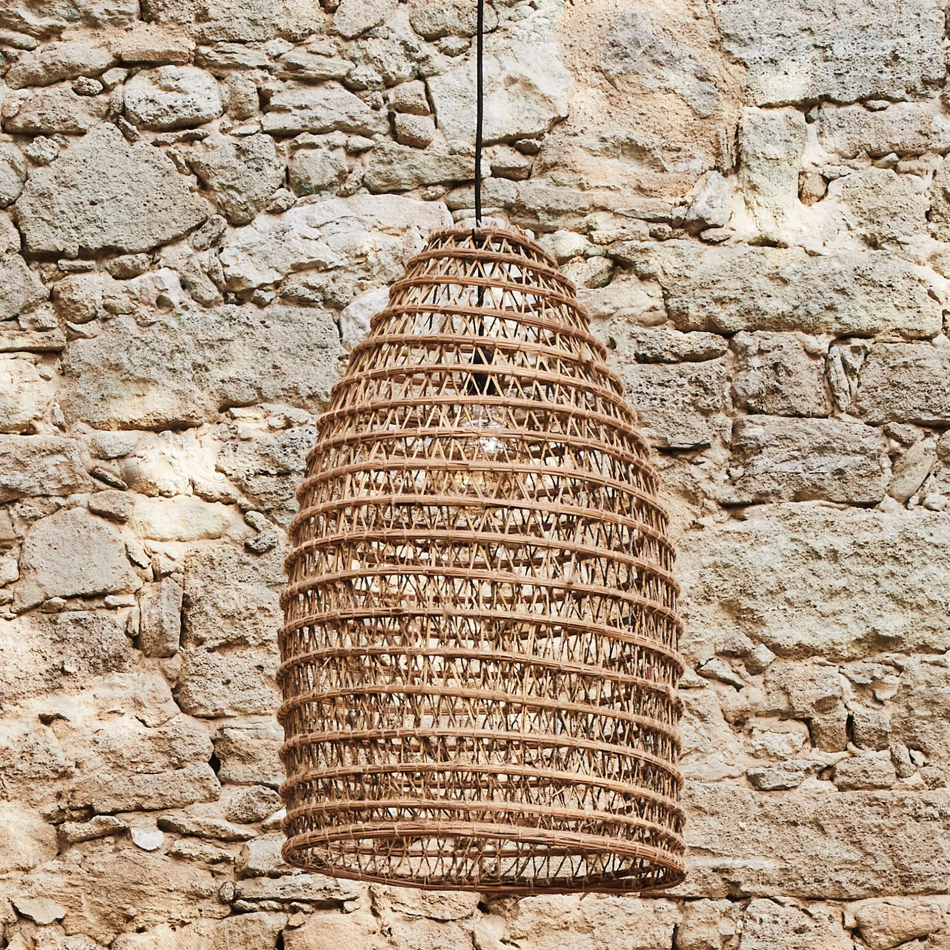 La suspension Oria est une nasse à poissons détournée en luminaire qui arbore une silhouette pleine de caractère au savoir-faire ancestral. Ici, déclinée dans une version extérieure, son câble électrique de 5 mètres, munie d’un câble au bout, répond à la norme de protection IP44 contre les projections d’eau. Tressée à la main, elle est entièrement fabriquée en fibres de palmiers. Cette magnifique suspension naturelle ajourée lui donne un style tout en mouvement et en légèreté. Polyvalente, elle pourra également s’utiliser en lampe de sol, directement posée sur une surface plane. Ce luminaire est disponible dans une autre taille.