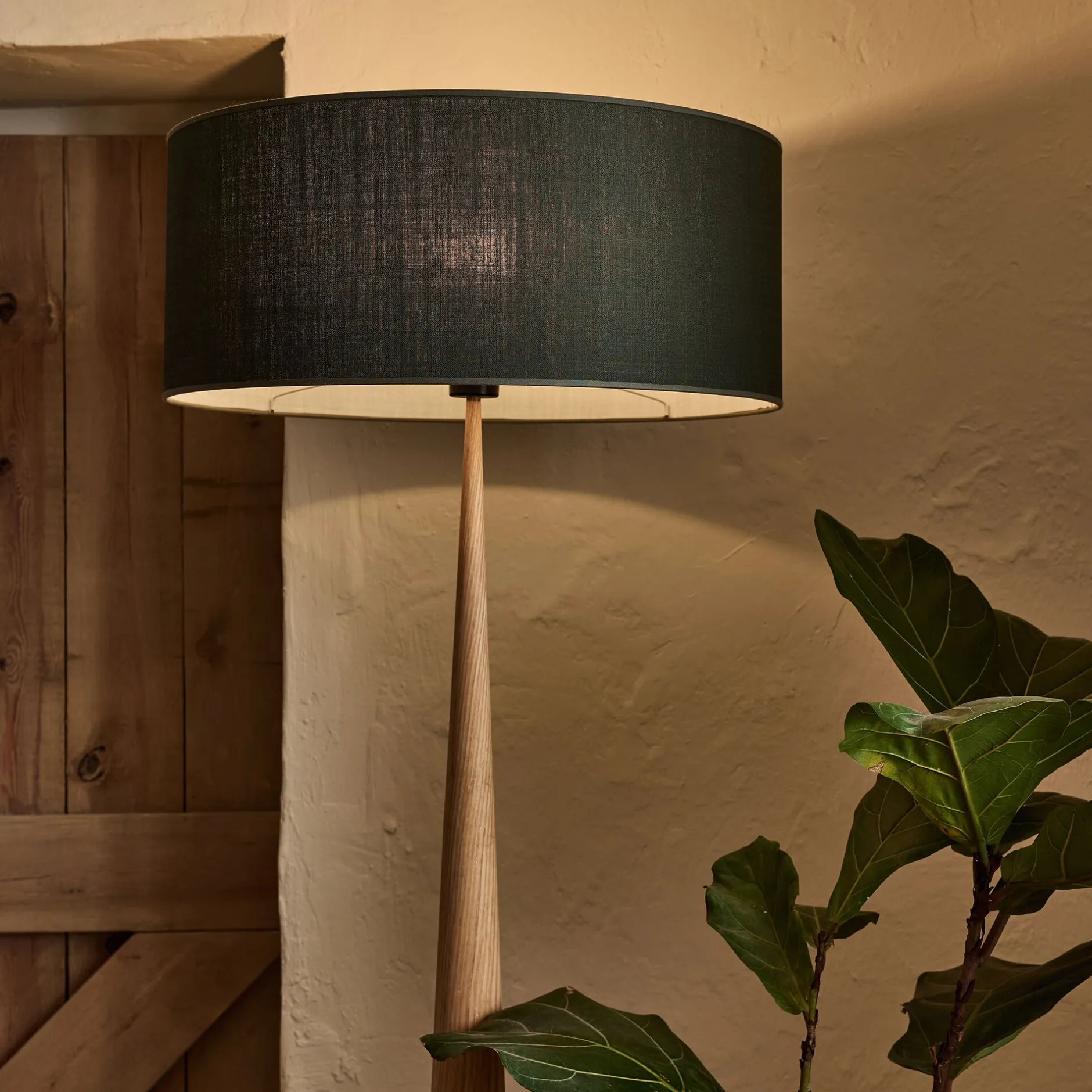 Abat-jour en coton et structure en acier époxy.