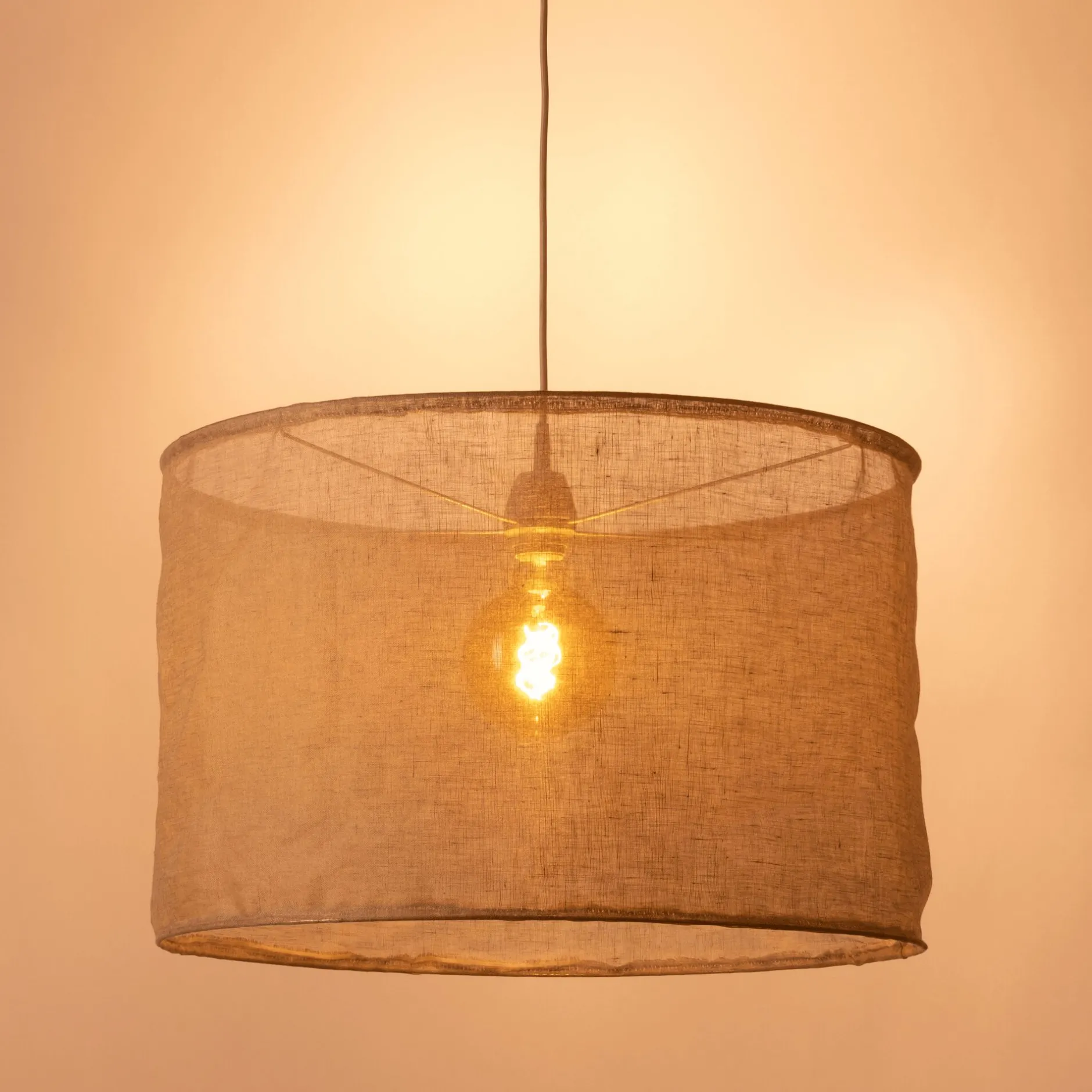 Cette suspension s’inscrit parfaitement dans un style chic et voluptueux. Elle est à la fois sobre et design, l’utilisation du lin avec son effet légèrement froissé apporte une touche plus brute tout en subtilité grâce à la légèreté et aux effets de transparence du lin. Pour un rendu parfait, choisissez une ampoule LED à filament.