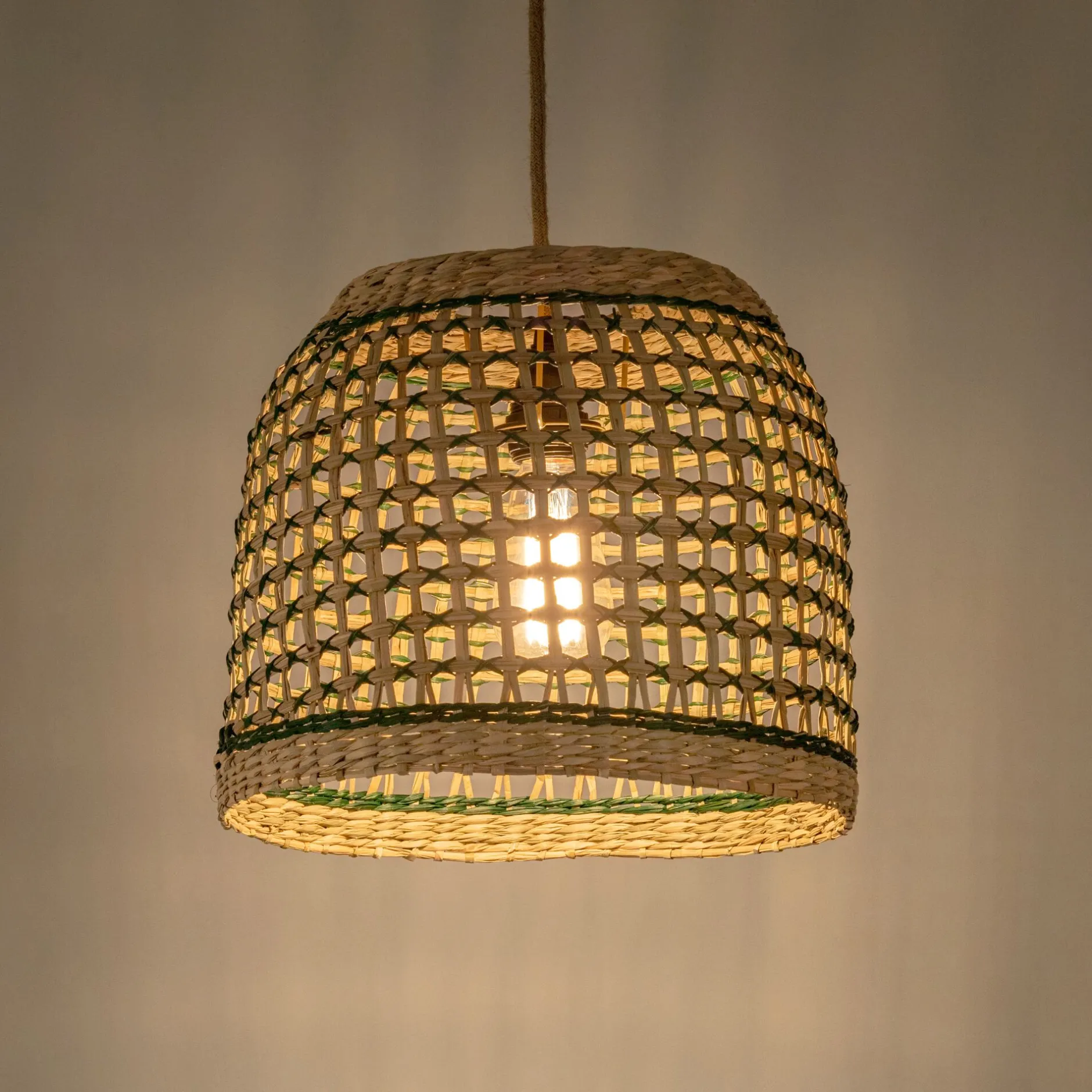 La suspension en jonc de mer Felis évoque une aura à la fois rustique et marine. Les fibres naturelles s’entrelacent avec des fibres noires, créant un tissage graphique qui transporte l’esprit vers des contrées iodées. Cette petite suspension incarne une élégance discrète où la simplicité du jonc de mer rencontre une palette bicolore subtile. Accrochée en hauteur, cette suspension non électrifiée projette une lumière douce, rappelant les reflets du soleil sur les flots calmes. Chaque détail de cette décoration raconte l’histoire de l’océan, évoquant un sentiment apaisant de connexion avec la nature.