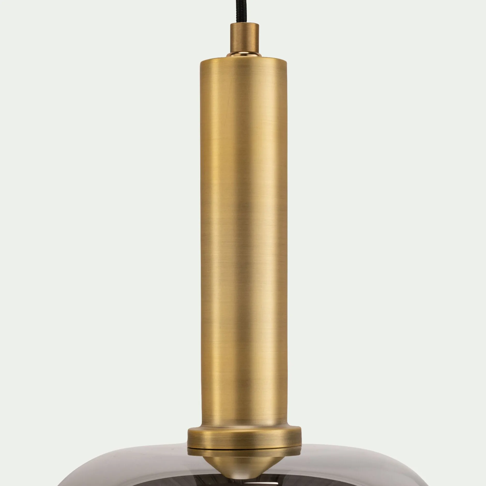 Abat-jour : Verre fumé avec bague en laiton doré mat.