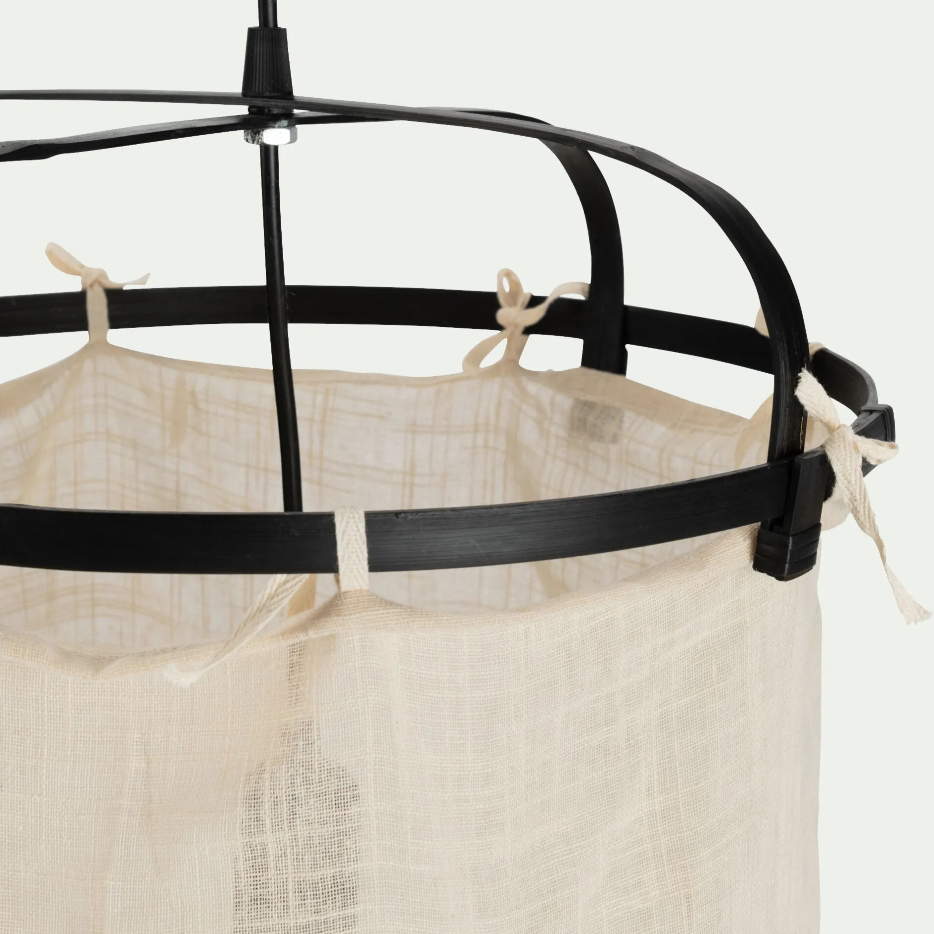 Suspension en voile de coton blanc, structure en bambou noir et fer.