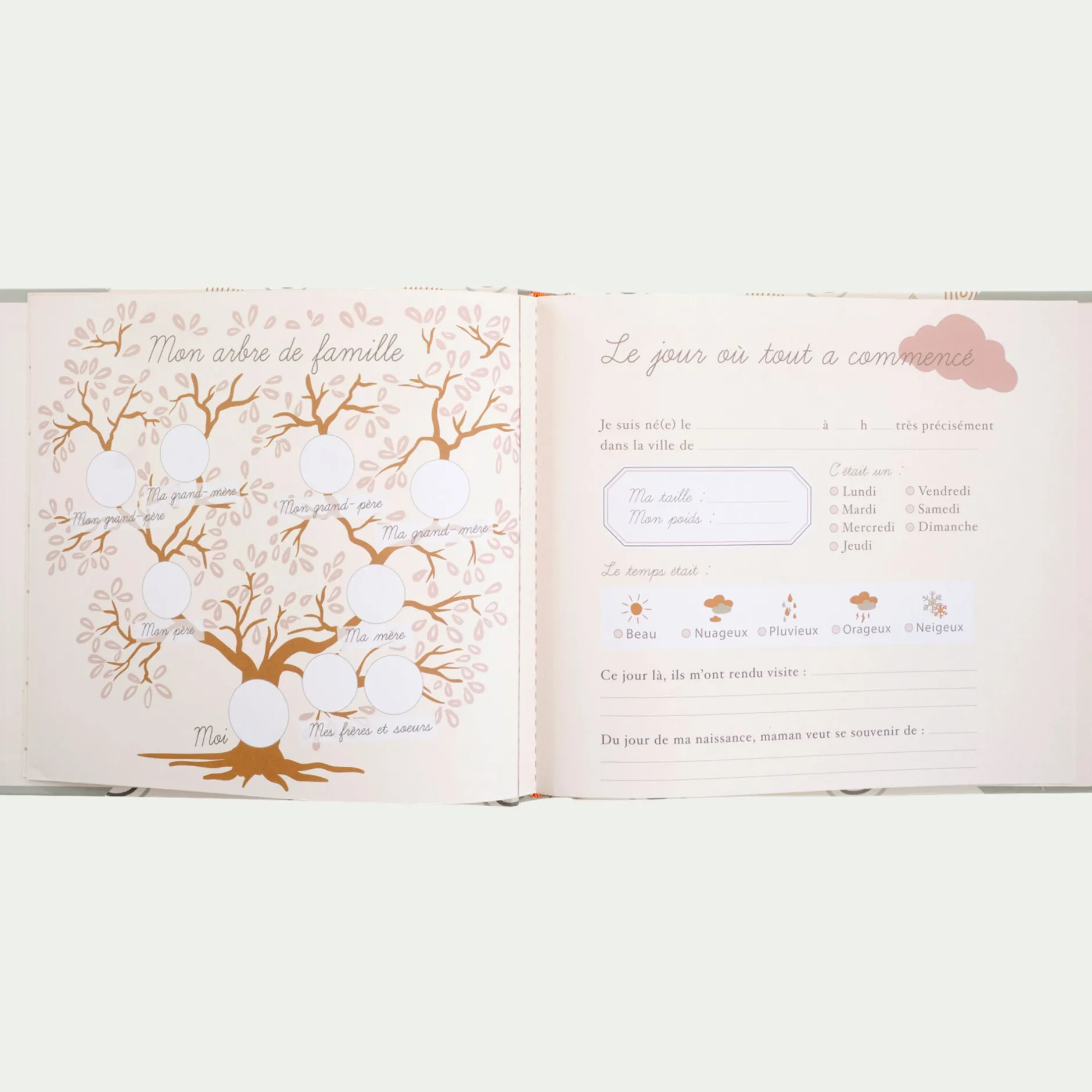 Ninon est un précieux trésor où recueillir tous vos souvenirs. De sa naissance jusqu’à sa première bougie, bébé grandit, évolue, découvre et nous épate chaque jour. Autant de moments à conserver soigneusement de ce bel album photo. Cet album de naissance peut contenir jusqu’à 120 photos. De l’arbre de famille en passant par le bracelet de naissance et les premières impressions… Chaque détail est recensé pour être revécu avec bonheur et nostalgie au quotidien. Indispensable, il témoigne de ce grand jour : la naissance de votre amour.