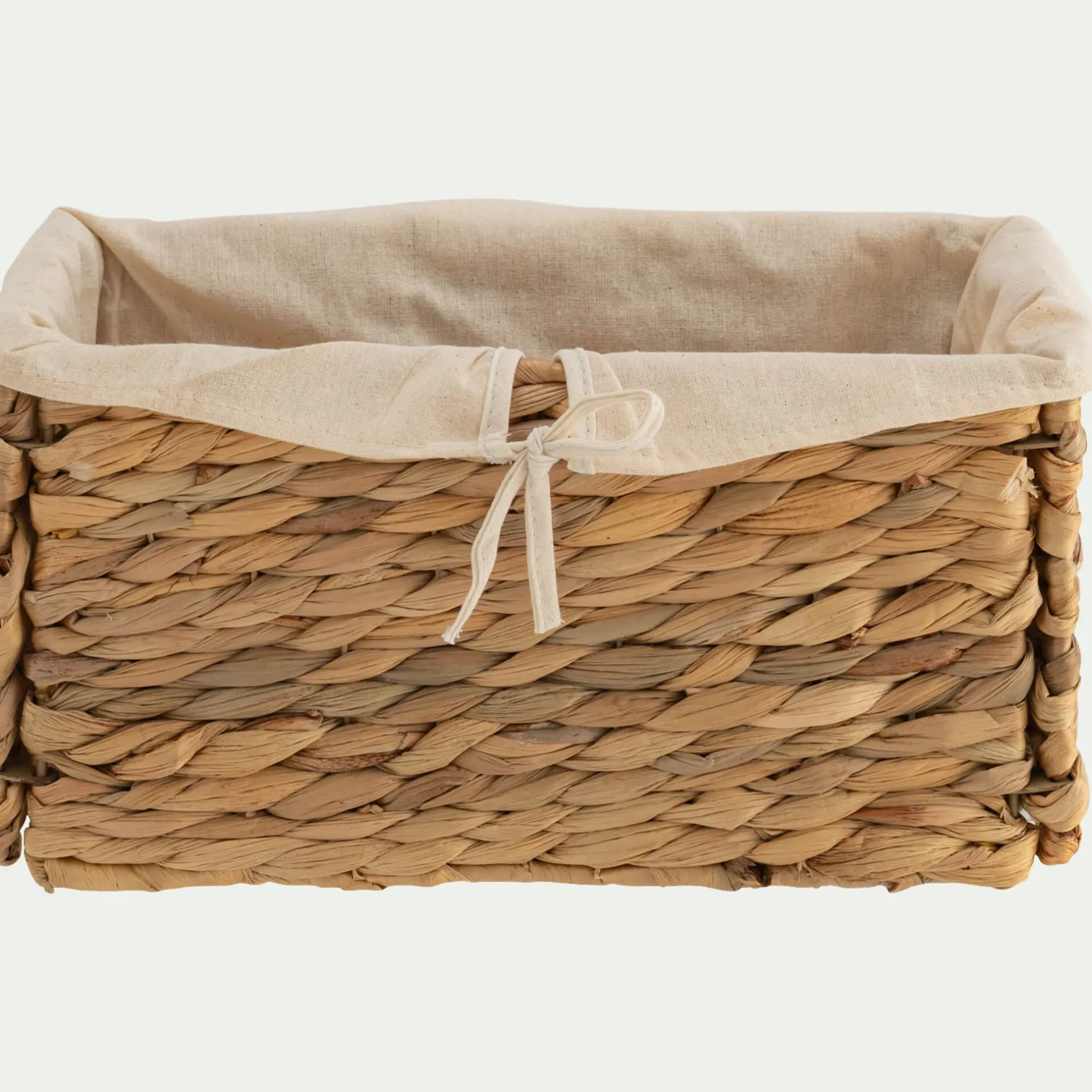 Ce panier de rangement combine charme naturel et praticité. Confectionné en jacinthe d’eau, il est également doté d’un pochon en coton qui apporte une touche délicate tout en facilitant son utilisation. Polyvalent et élégant, ce panier naturel s’intègre parfaitement dans tout intérieur, offrant une solution de rangement fonctionnelle et esthétique.