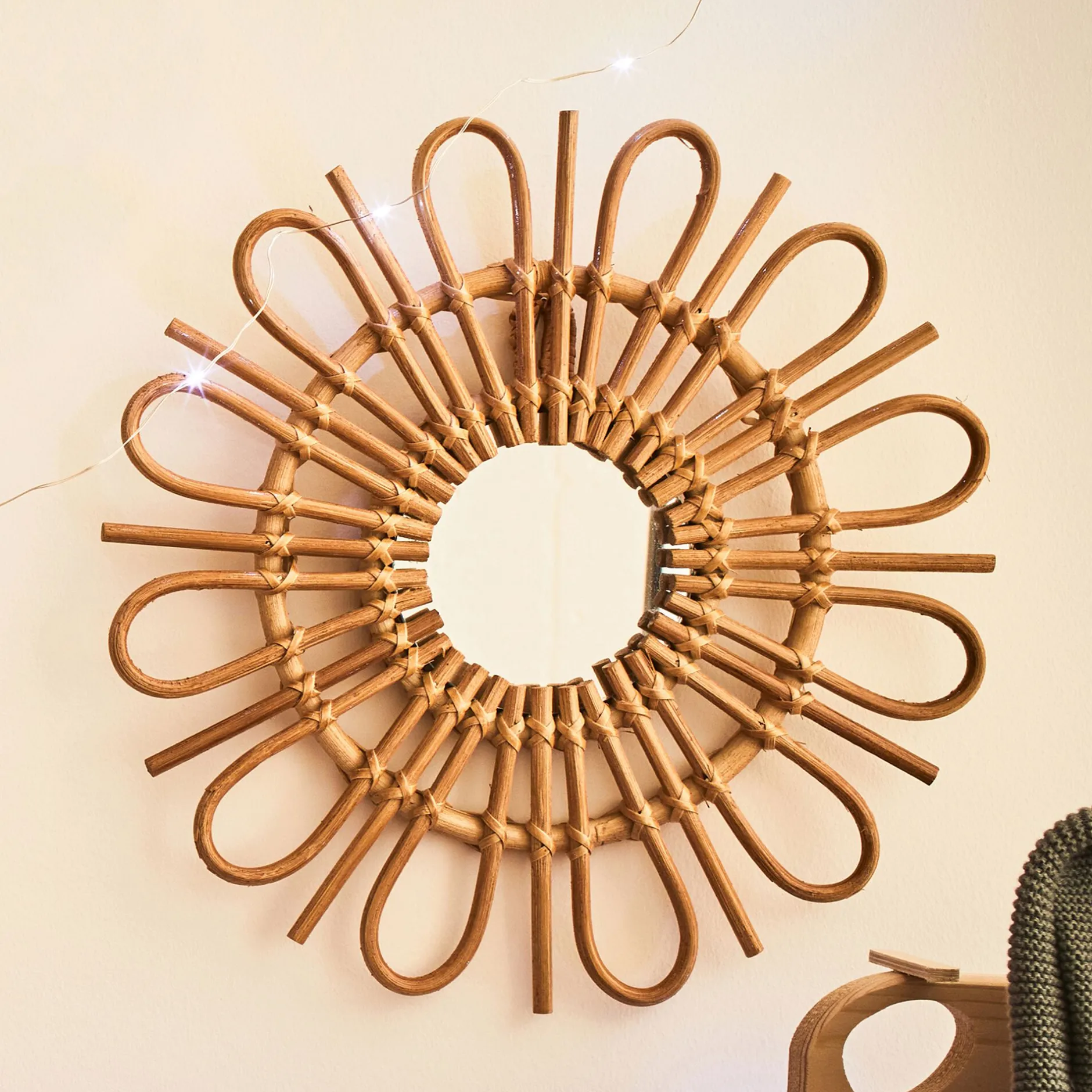 Matelas Enfant|Déco Murale*alinea Miroir fleur en rotin D35cm – Naturel