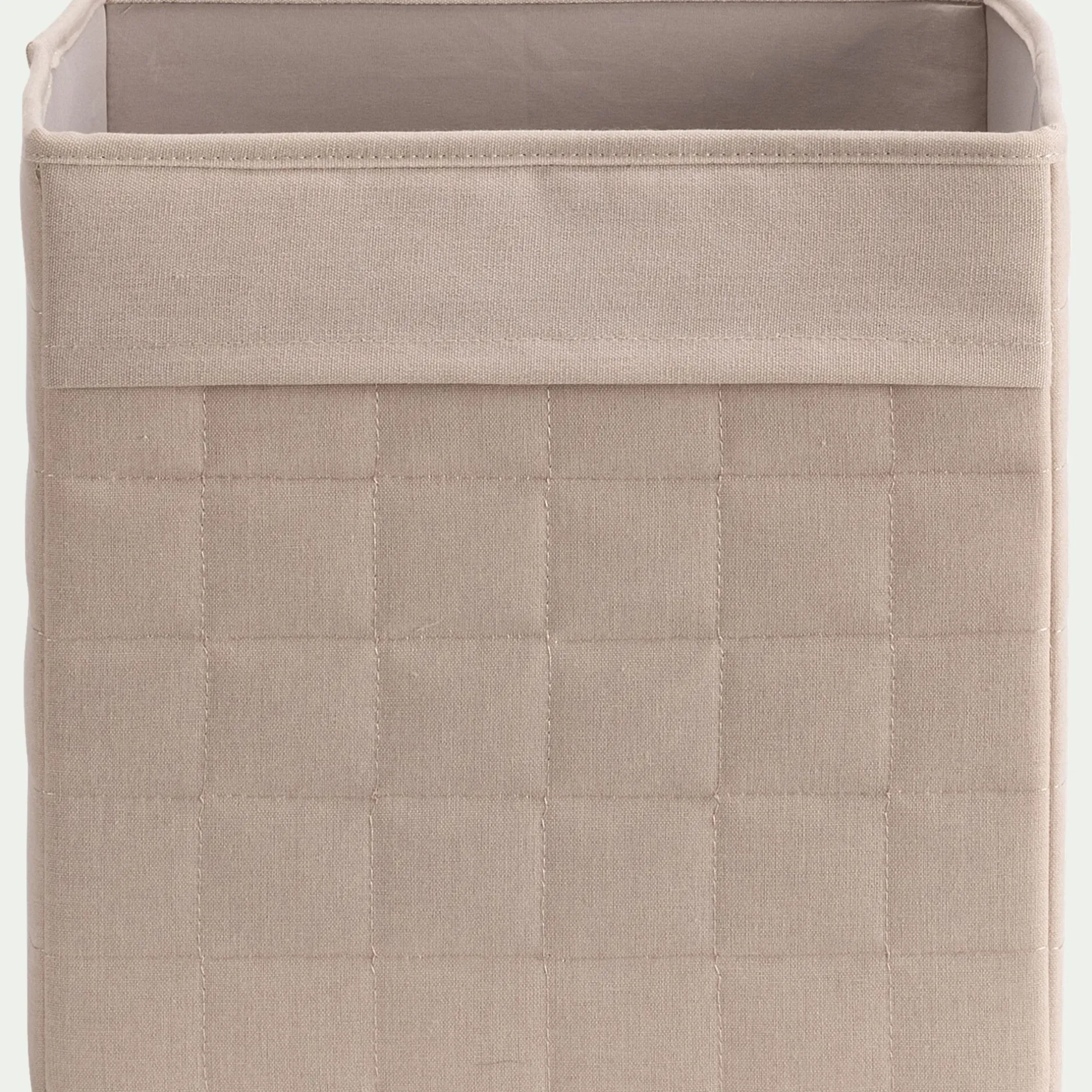 Avec sa forme cubique de 30 cm de côté, le panier Peyrolles s’adapte facilement à toutes les pièces de la maison. En tissu beige au fini matelassé, il apporte une touche chaleureuse grâce à ses coutures blanches. Sans couvercle, il reste toujours accessible et pratique pour ranger des jeux, du linge ou des accessoires du quotidien. Son format compact en fait un bel élément déco à glisser sur une étagère ou dans un meuble ouvert.