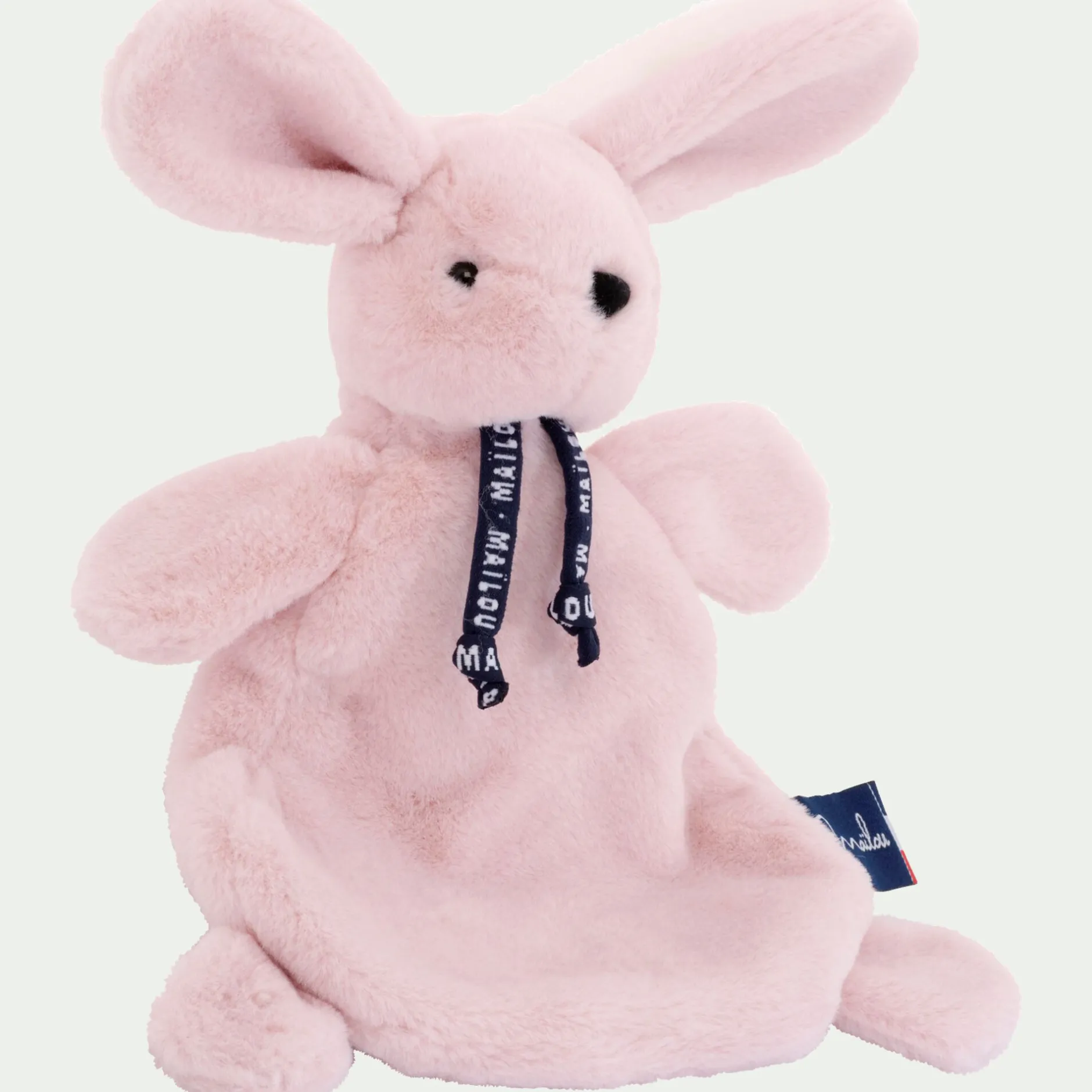 Ce doudou rose poudré représente un petit lapin, reconnaissable grâce à ses grandes oreilles. Ce doudou lapin est confectionnée avec une matière d’une infinie douceur, spécialement développée pour le confort des enfants. Il permet à votre minot de découvrir toute la richesse de la matière par le toucher. Fait à la main, ce doudou allie savoir-faire traditionnel de qualité, douceur et créativité. Votre bambin l’adoptera immédiatement. C’est aussi une belle idée de cadeau de naissance.