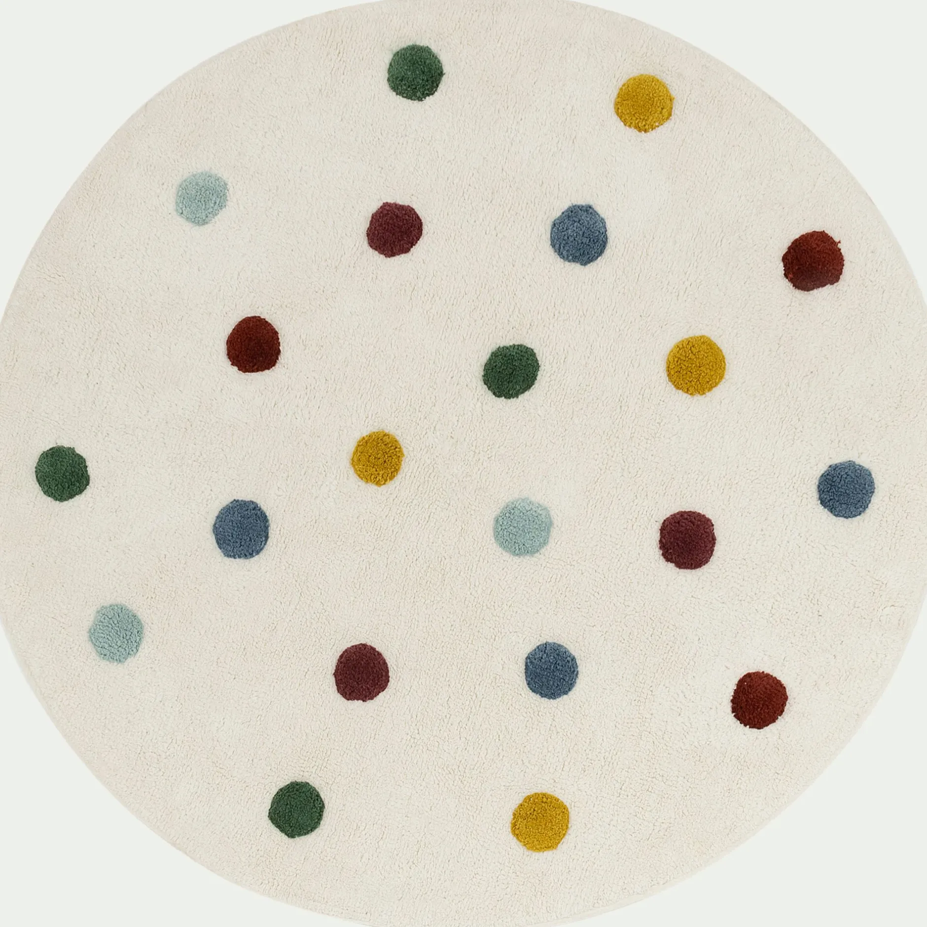 Ce grand tapis rond de 120cm apportera douceur à la chambre de votre enfant. Atout déco, le tapis rond aux motifs pompons donne une note acidulée et originale. 100% coton, cette matière naturelle fera de ce beau tapis posé au pied du lit un élément décoratif qui mettra en valeur la pièce. Sa partie anti-dérapante permettra à votre marmot d’éviter les éventuelles glissades.