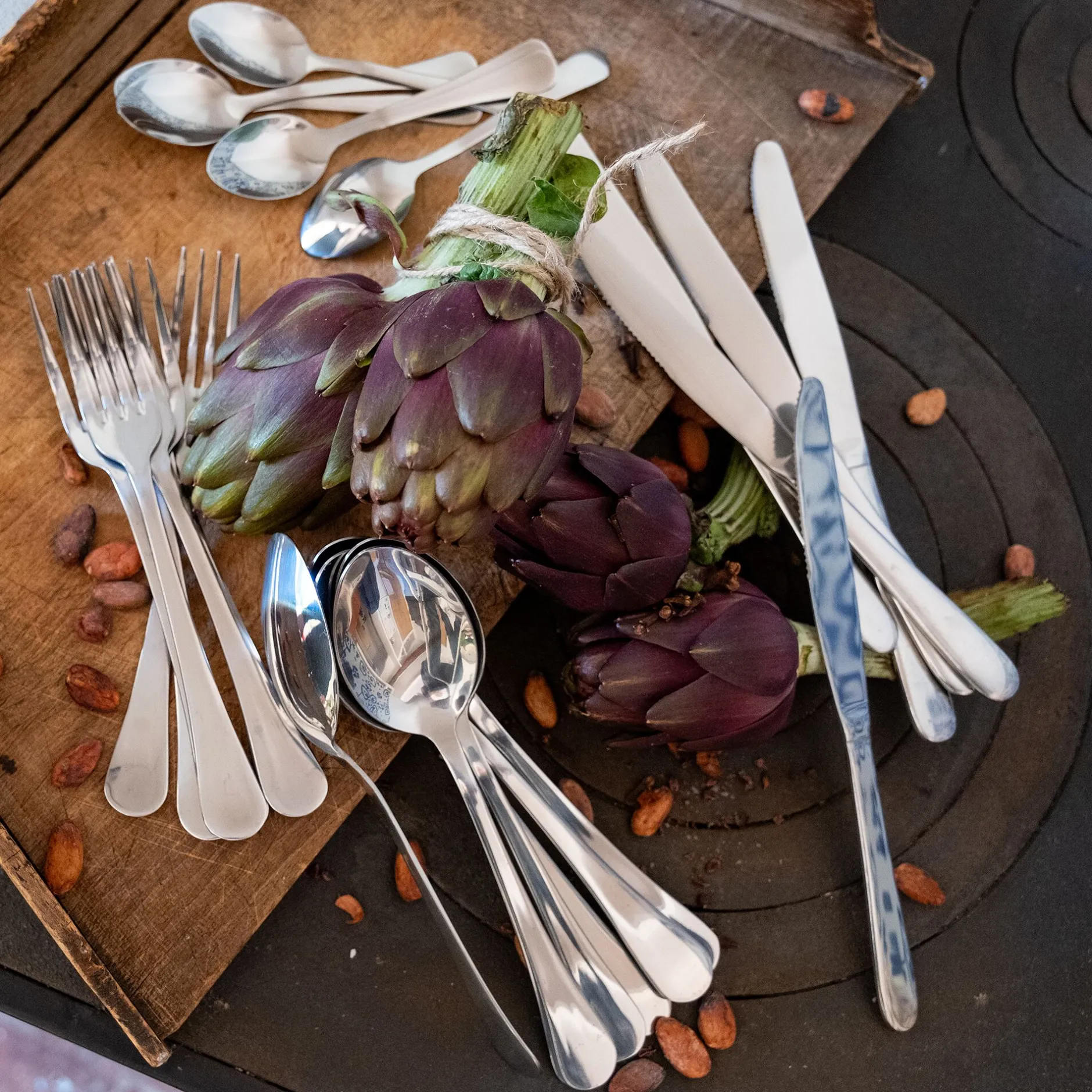 Dressez une table intemporelle et élégante avec la ménagère 24 pièces Scolime. Cet ensemble de couverts argentés se compose de 6 fourchettes, 6 couteaux, 6 cuillères à soupe et 6 petites cuillères. Confectionnés en acier inoxydable, ces couverts arborent une finition polie. Le métal est légèrement mat, donnant à cette ménagère argentée un design moderne. Ces 24 couverts en inox sont compatibles avec l’utilisation du lave-vaisselle pour un usage quotidien facilité.