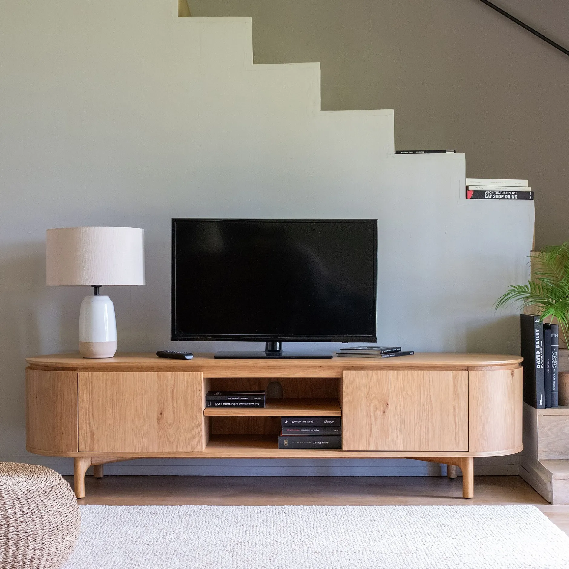 Meuble Tv*alinea Meuble tv ovale en bois – L180xl45xH48cm Bois clair