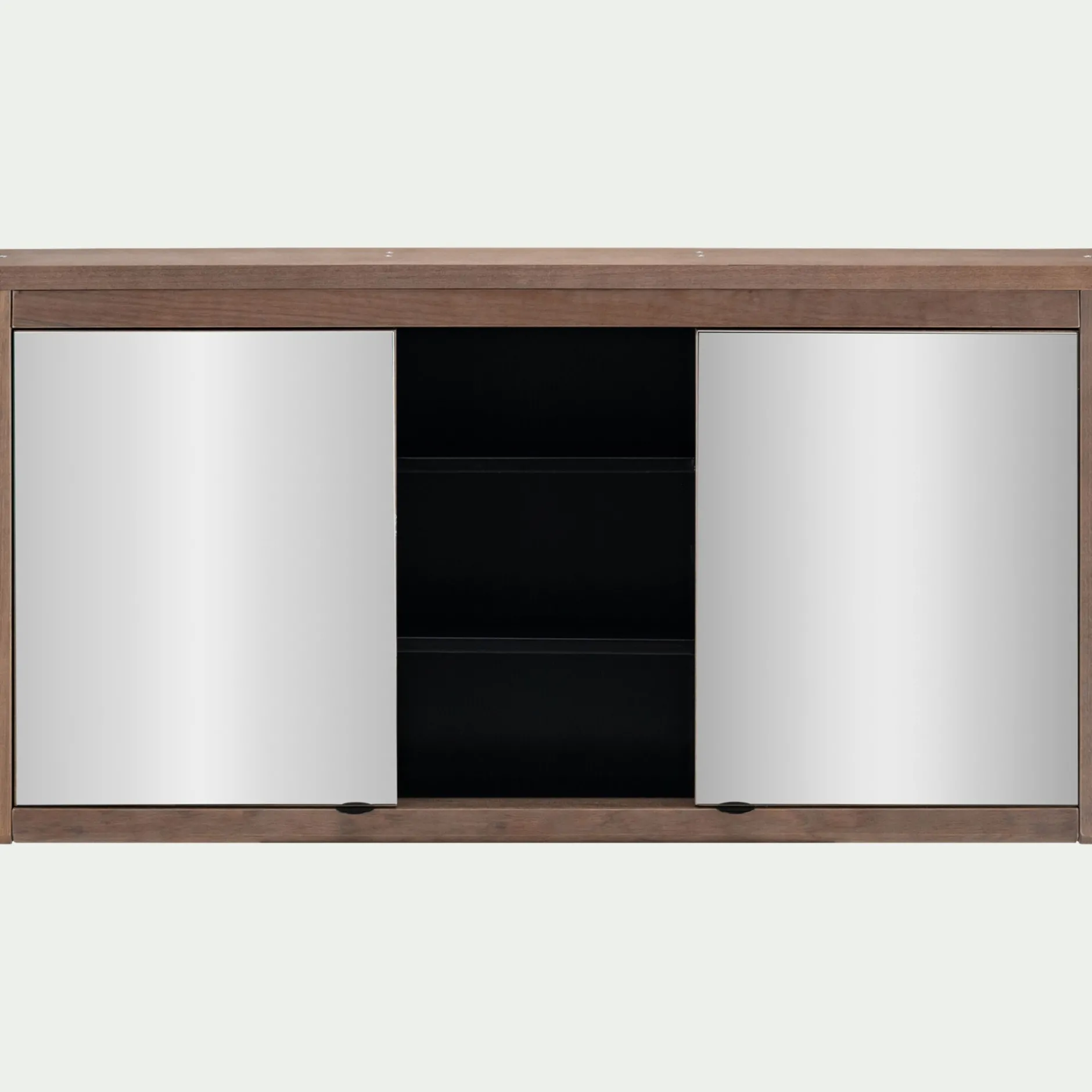 Ce grand miroir double de salle de bain est idéal pour placer au dessus d’un meuble vasque double. Il mesure 120×42 cm, ainsi il convient parfaitement aux salles de bains adaptées à deux personnes. Une fois fixé au mur, ce miroir en bois de pin plaqué eucalyptus fait également office de rangement. Il se compose de petites tablettes, idéales pour ranger produits beauté, bijoux, parfums et bougie parfumée. Vos soins restent à portée de main et votre salle de bain est mieux organisée. Ce grand miroir mural est confectionné en pin avec des finitions en eucalyptus : une belle pièce qui s’intègre parfaitement à une décoration naturelle.