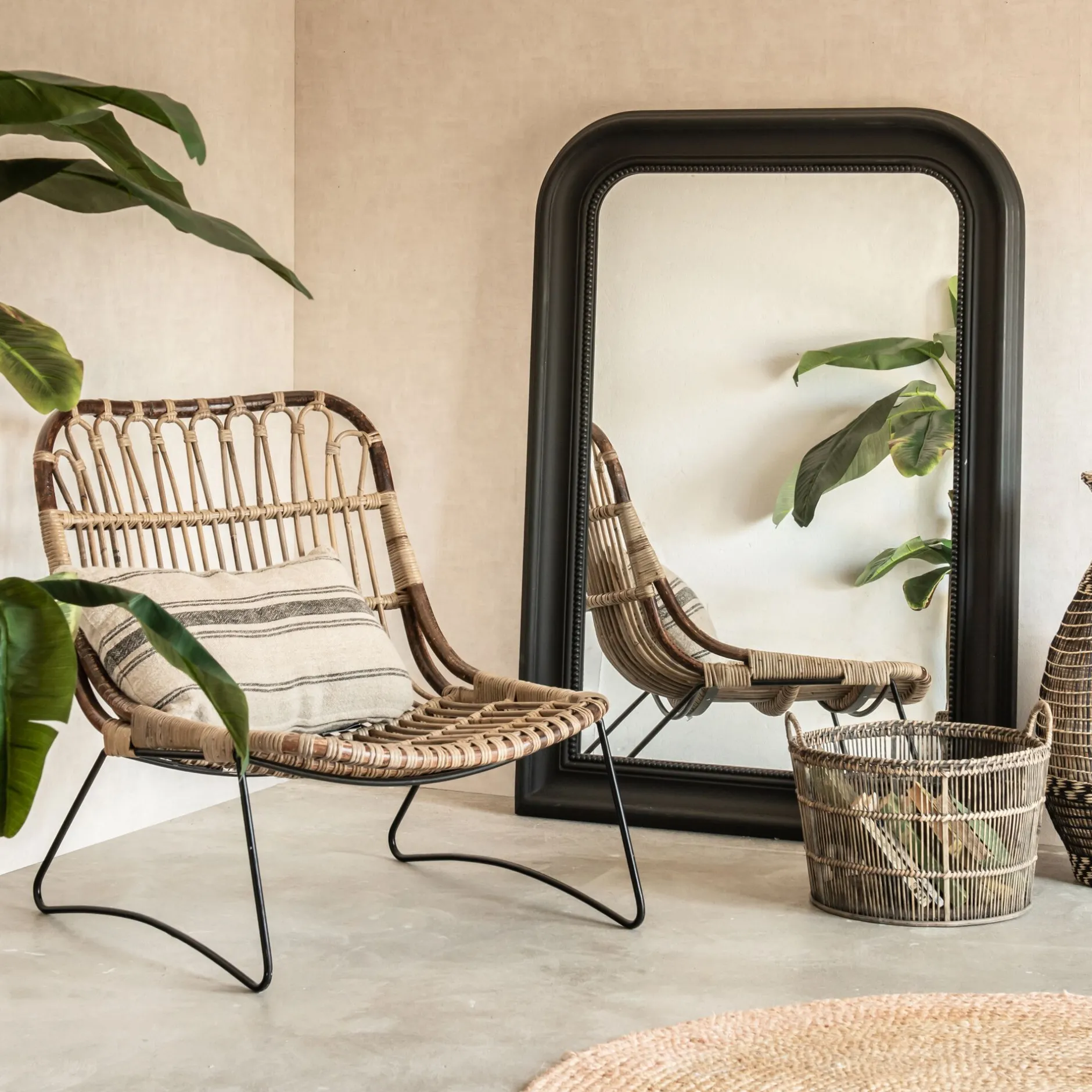 Miroir*alinea Miroir à moulures en bois – H115cm Noir