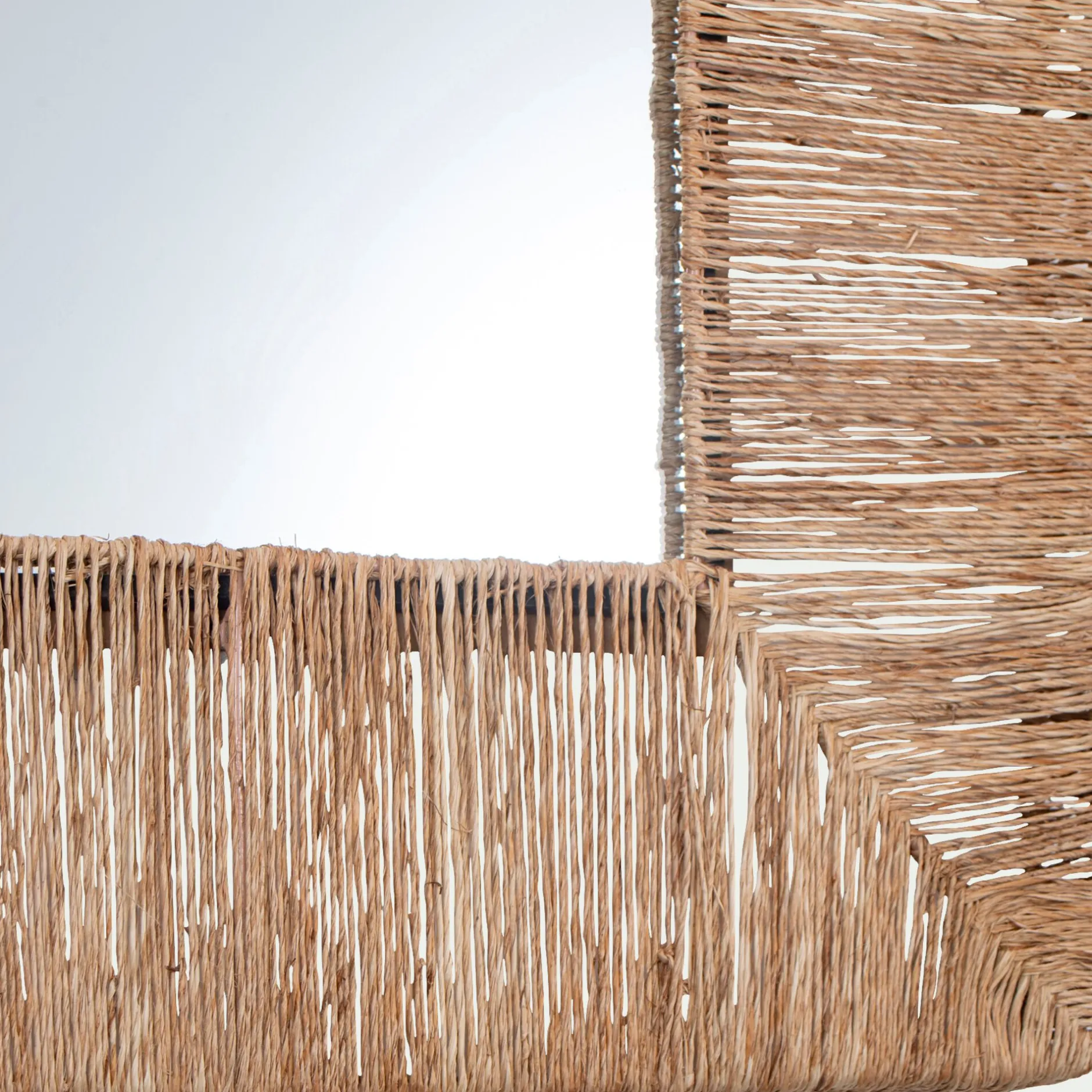 Décorez les murs de votre chambre ou de votre salon avec un miroir à suspendre. Au-delà d’être des objets déco intemporels, les miroirs permettent d’agrandir visuellement la pièce et de l’illuminer. Le miroir déco Vendres arbore une structure carrée faite en bois et métal. Le jonc de mer, des fibres dorées et résistantes, vient ensuite s’entrecroiser sur la structure pour offrir ce tissage brut. Ce miroir carré mesure 76×76 cm. Seul ou en accumulation, il habille votre intérieur de son design rustique et de son reflet radieux.
