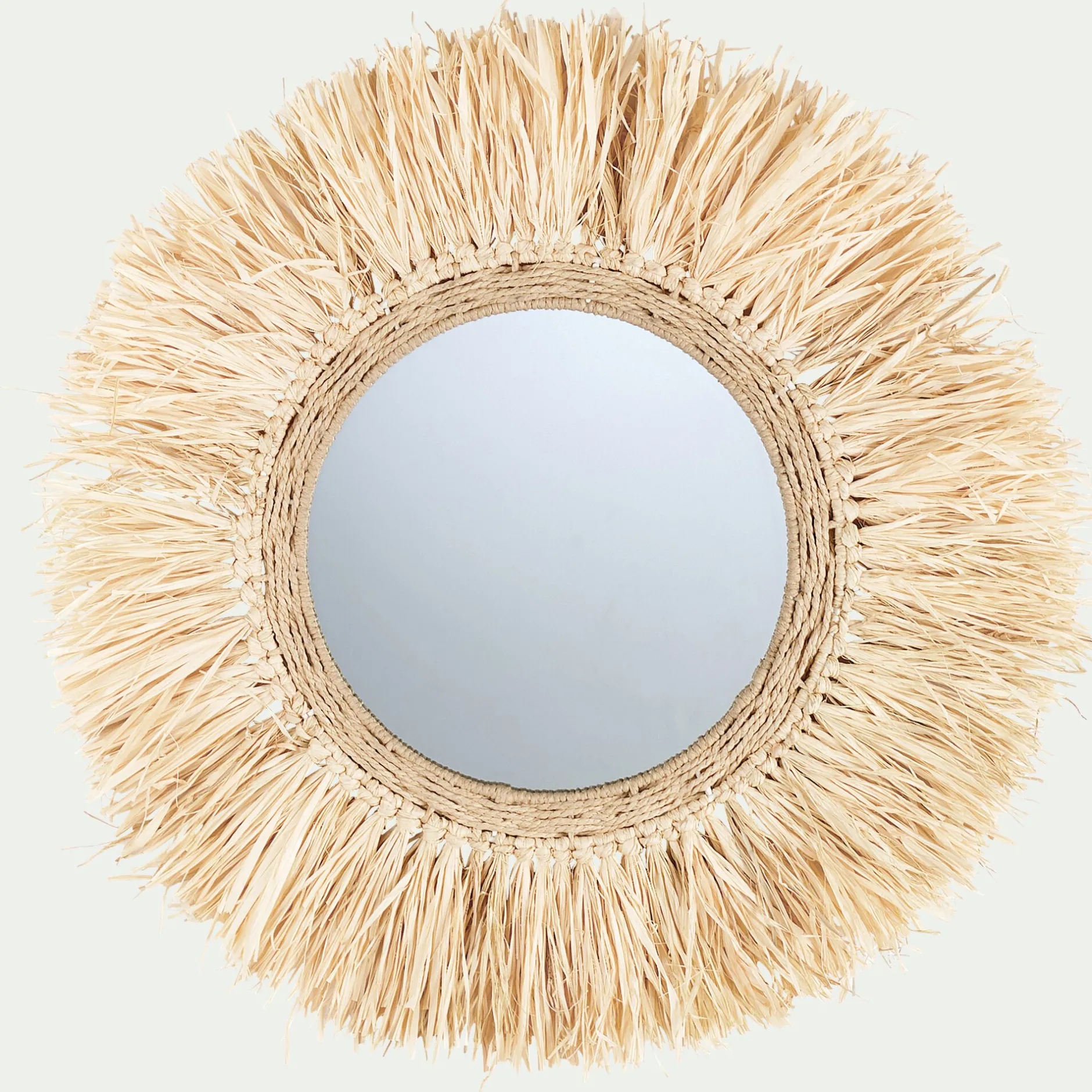 Le miroir naturel Faro arbore une crinière luxuriante qui habille généreusement l’espace. Sa couronne est tressée en raphia, un type de palmier originaire de Madagascar. Ses palmes sont séchées puis utilisées en décoration afin d’insuffler chez vous un vent à la fois exotique et naturel. Ce miroir moyen de 65cm de diamètre se suspend seul ou bien au sein d’une composition à votre image.