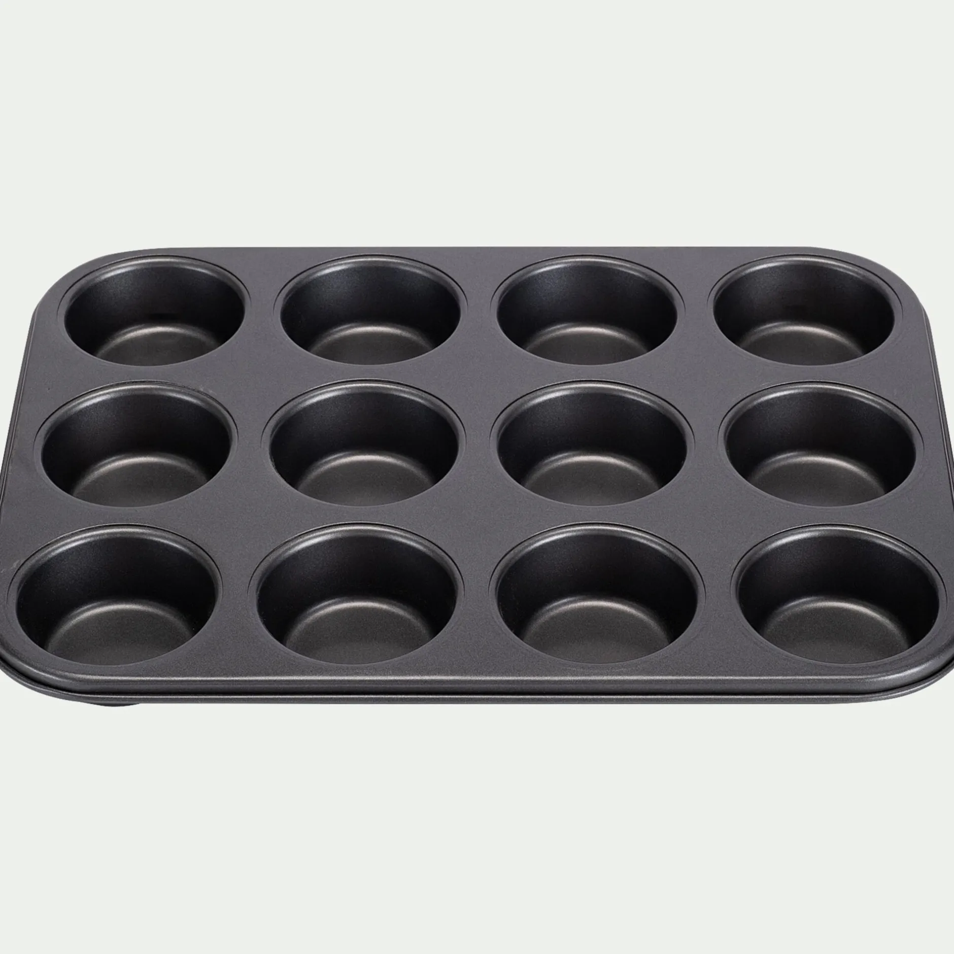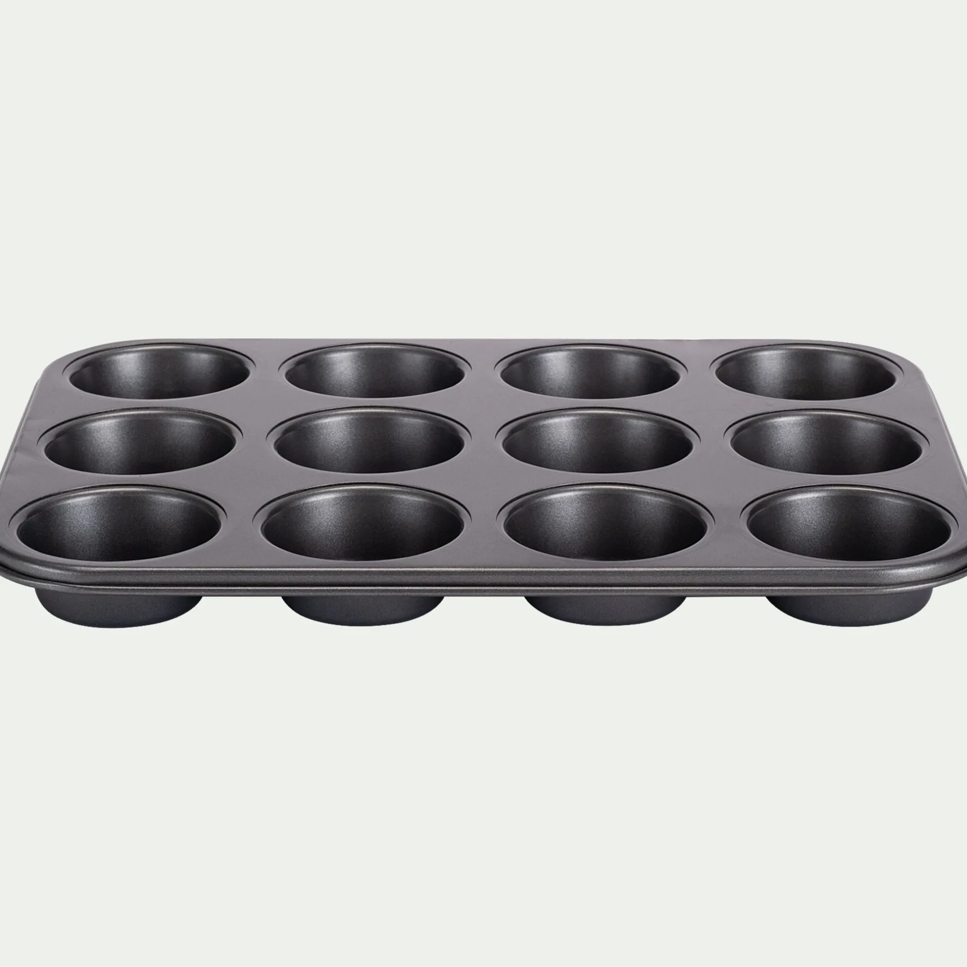Conçu pour les passionnés de cuisine, ce moule à muffins vous assure une fournée parfaite et homogène. Sa conception en acier robuste est associée à un revêtement anti-adhérent, gage de longévité et d’une cuisine plus saine. Chaque cavité de 6,8 cm de diamètre est pensée pour garantir une cuisson dorée et uniforme à vos préparations. Le démoulage devient un geste simple et rapide, pour obtenir des muffins parfaitement formés sans effort. Fini les déceptions : grâce à la qualité du revêtement, vous réduisez l’usage de matière grasse et simplifiez grandement le nettoyage. Avec sa capacité de douze unités et ses bords renforcés, ce moule est à la fois stable et résistant, même après de nombreux usages. Il sera l’outil indispensable de toutes vos créations, qu’il s’agisse de muffins sucrés, salés ou de toute autre recette gourmande.