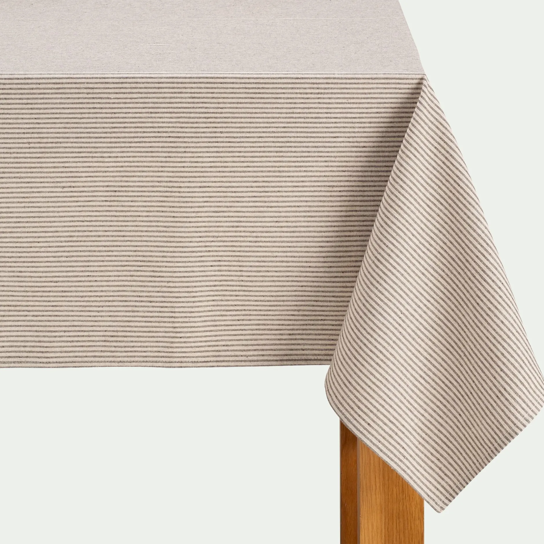 Banon est une belle nappe à rayures, idéale pour donner une touche déco à votre table. Son tissu, composé en grande majorité de coton, lui donne sa texture douce et son allure sophistiquée. Cette nappe de 150×250 cm offre une belle toile sur laquelle exposer votre art de la table et habiller joliment votre table de repas. Epurée, mais pourtant originale, cette nappe rectangulaire arbore un motif intemporel qui s’adaptera aisément à votre déco d’intérieur.