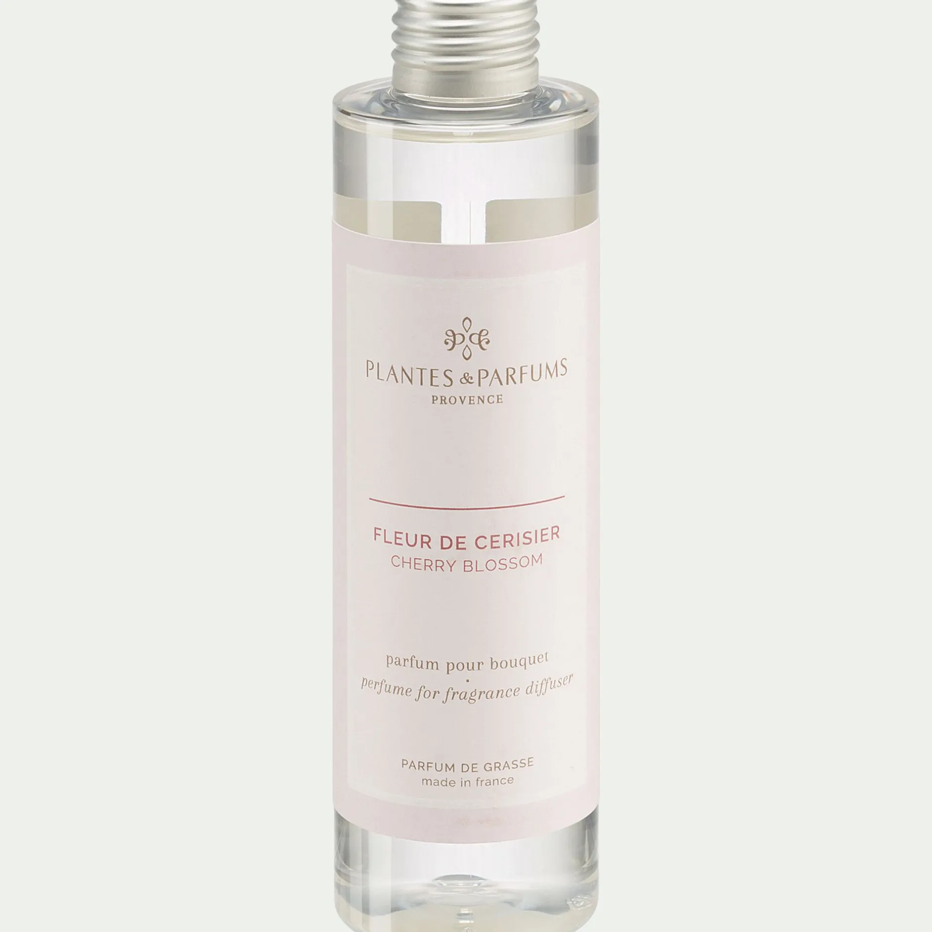 Forte de ses notes de tête composées principalement de fleur de cerisier, la fragrance en hommage à ce délicat arbre japonais exhale une douce odeur florale. Fleur vénérée au coeur de nombreuses traditions ancestrales, elle diffuse un parfum aussi sucré qu’amer. Elle s’harmonise parfaitement avec d’autres parfums de fleurs, comme la violette, poudrée, et le jasmin, opulent. La prune, plutôt gourmande et veloutée, complète subtilement cette effluve florale. Cette promenade irréelle au bord des cerisiers se termine par des odeurs chaudes et boisées de santal et de cèdre. La recharge Fleur de Cerisier de 200ml souffle un vent noble et gracieux chez vous, un parfum racé et subtil, comme une invitation à la volupté.