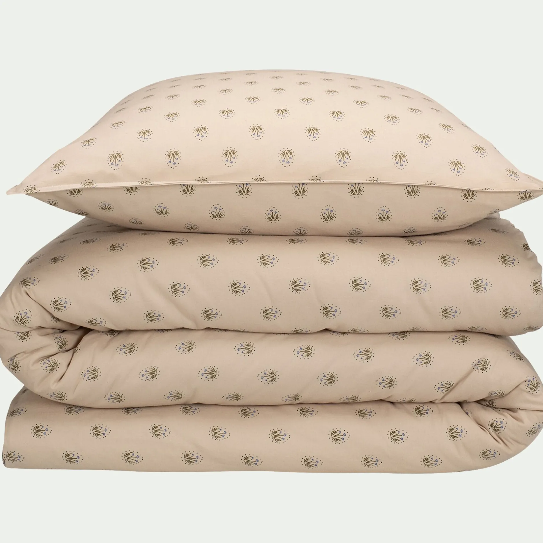 Plongez dans un monde de douceur et de raffinement avec cette parure de lit en coton cretonne. La cretonne est un tissu épais, au tissage serré. Conçue pour transformer votre chambre en un véritable havre de paix, elle se compose d’une housse de couette de 240×220 cm et de deux taies d’oreiller carrées de 63×63 cm. Inspiré d’un jardin français, le motif floral qui l’orne évoque l’élégance et la délicatesse. Chaque détail est finement travaillé, offrant un rendu régulier et harmonieux. Élément décoratif de la chambre, ce linge de lit en coton cretonne est aussi un indispensable pour des nuits paisibles et réparatrices.