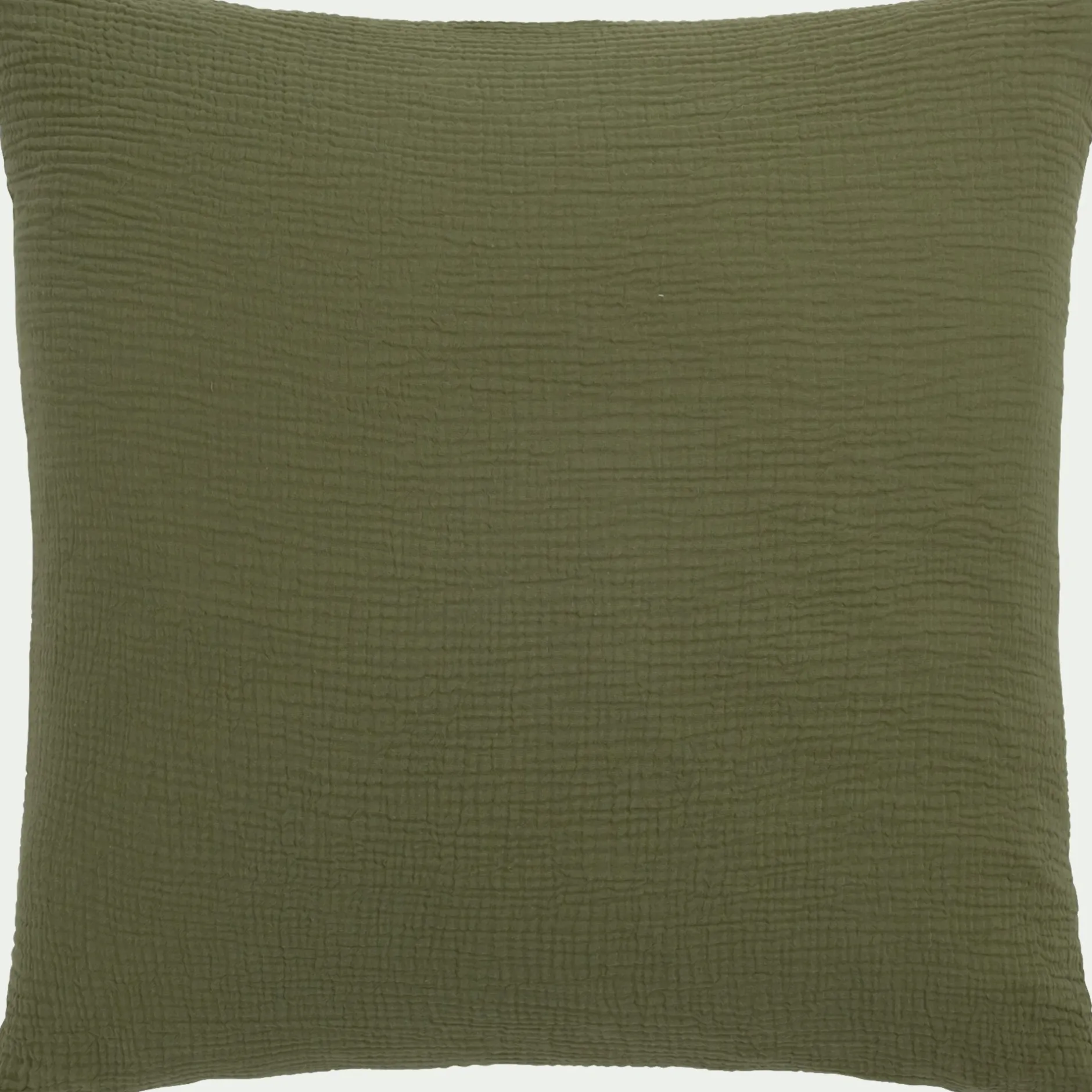 Aménagez une chambre chaleureuse et agréable à vivre avec la parure de lit Baleti. Confectionnée en double gaze de coton, cette parure verte arbore une texture froissée, à la fois charmante et très pratique d’entretien. La double gaze vient apporter une touche de confort sans pareil à votre lit, tissu doux et réconfortant que l’on ne se lasse pas de toucher. Cette parure unie se compose d’une grande housse de couette de 260×240 cm. Celle-ci s’accompagne de deux taies d’oreiller assorties de 63×63 cm. Un ensemble élégant, à la fois chic et bohème, qui apporte à la chambre charme et caractère.