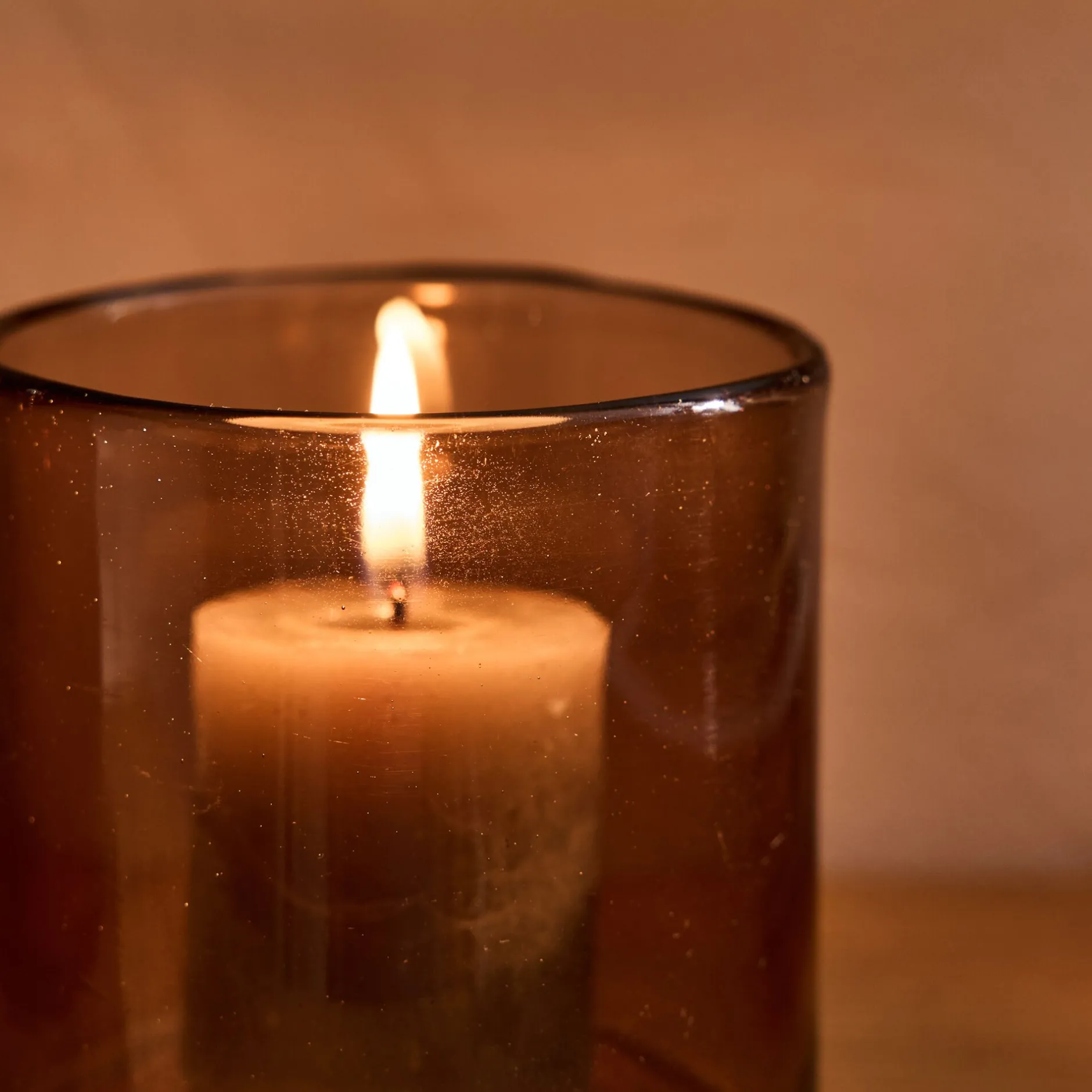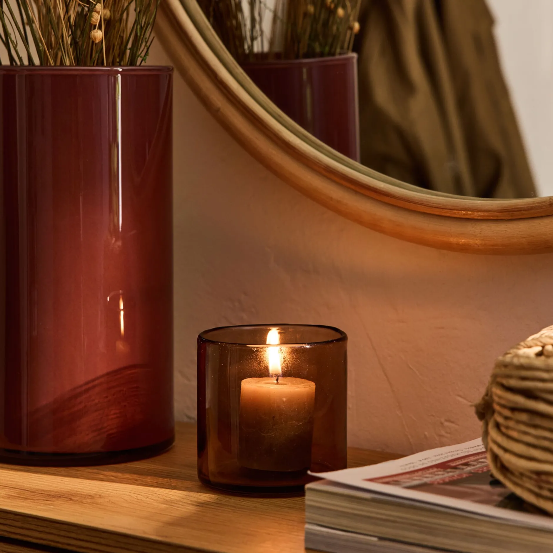 Ce petit photophore mise sur la simplicité pour mieux capter la lumière. En verre teinté dans notre coloris brun rustrel, il diffuse une lueur chaleureuse une fois une bougie placée en son cœur. Sa silhouette ronde et minimaliste (10 cm de diamètre) en fait un bel objet à poser sur une table ou une commode, seul ou accompagné d’autres photophores. Une touche discrète mais précieuse pour créer une ambiance feutrée, entre élégance et simplicité.